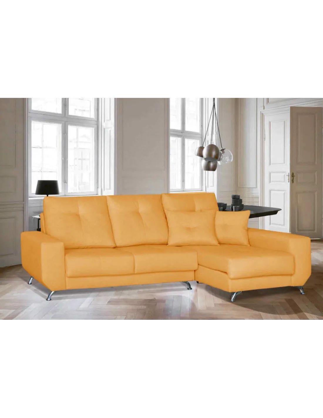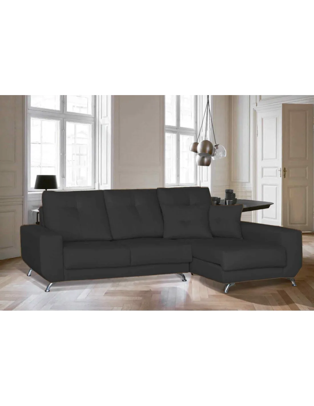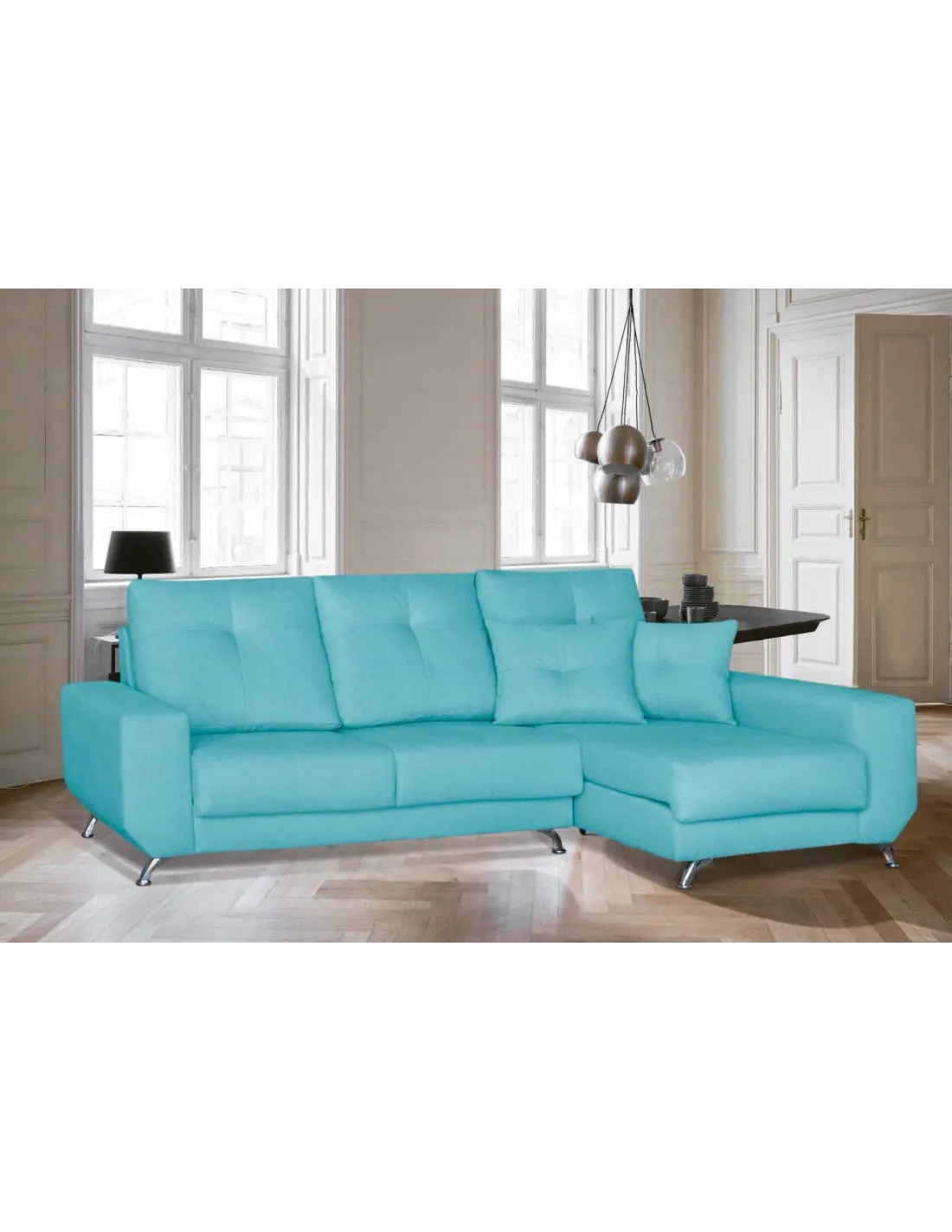 Respaldos rectos para dar una sensación moderna pero compaginando el capitoné para ofrecer su parte clásica.