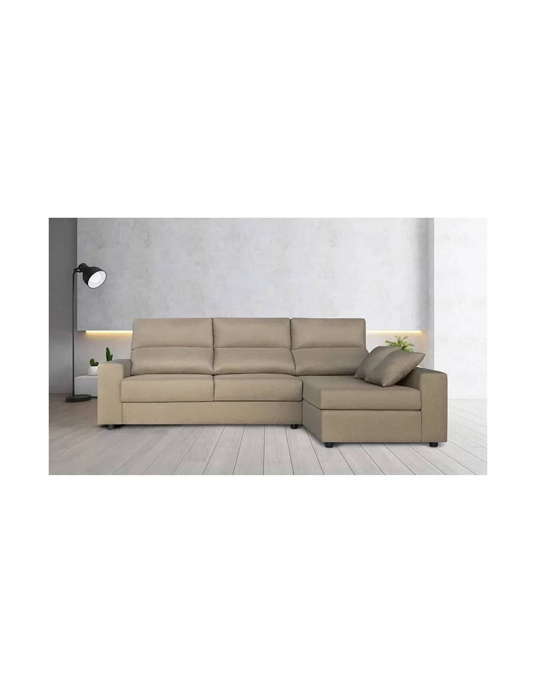 Disfruta la comodidad que ofrece nuestro sofá chaise longue confeccionado con tejido de gran calidad. Este chaiselonge se compone de asientos reclinables para que puedas ajustar la altura del cabecero y así evitar molestias cervicales.