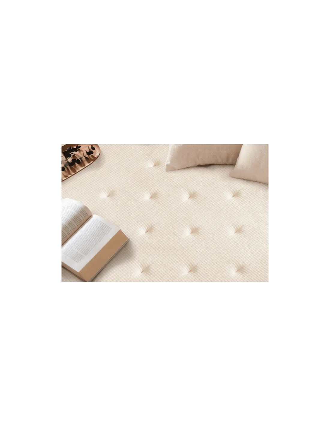 El uso de Firmsoja HR 35 kg/m³ aporta un soporte resistente y flexible, ideal para quienes buscan un colchón que mantenga su firmeza con el tiempo y responda a los movimientos del cuerpo. Además, su tejido de algodón orgánico garantiza una experiencia fresca y transpirable, regulando la humedad y manteniendo la piel seca y cómoda durante todo el año.