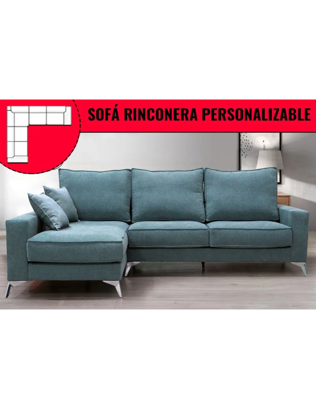 - Pata alta con diferentes acabados: negro, blanco e inox con una altura de 13cm para que sea más fácil acceder a la parte inferior del sofá, para facilitar la limpieza.