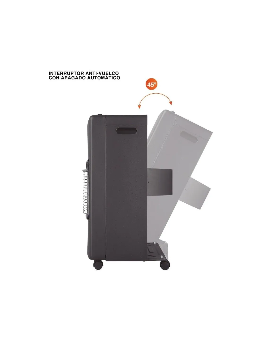- Interruptor anti-vuelco con apagado automático, que mejora la seguridad ante inclinaciones accidentales.