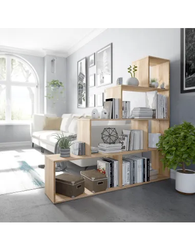 - Versatilidad: Puede utilizarse como estantería de pared o como separador de ambientes, permitiendo organizar libros, plantas u objetos de decoración.