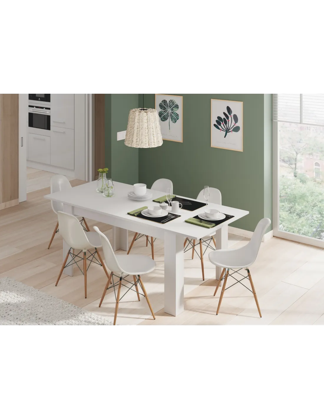 - Extensible: La mesa se amplía de 140 cm a 190 cm de longitud mediante un tramo central.