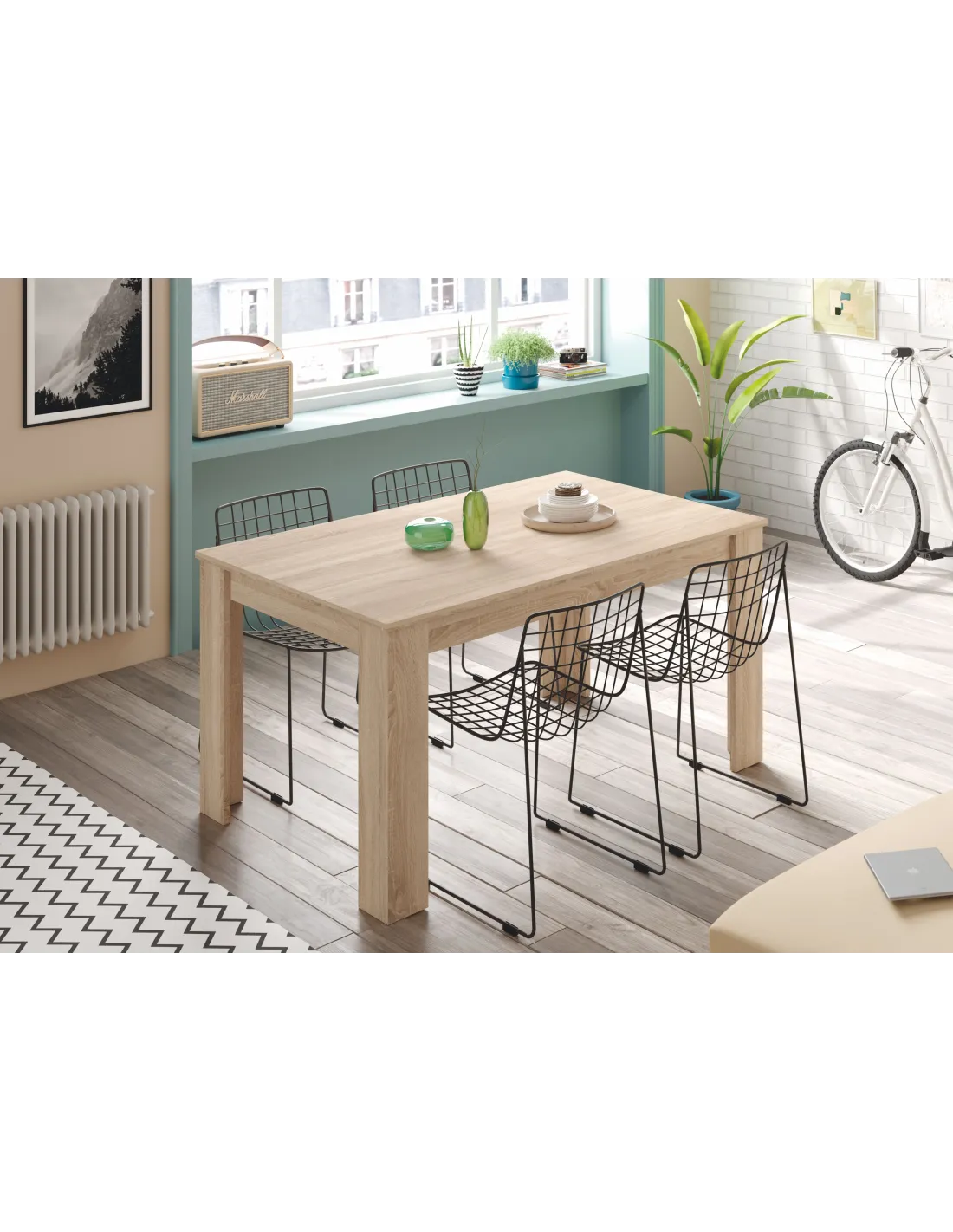 La mesa de comedor Practico combina funcionalidad y estilo. Gracias a su sistema de extensión central, permite ampliar su superficie de forma rápida para adaptarse a tus necesidades, garantizando siempre la máxima estabilidad y resistencia para el uso diario.