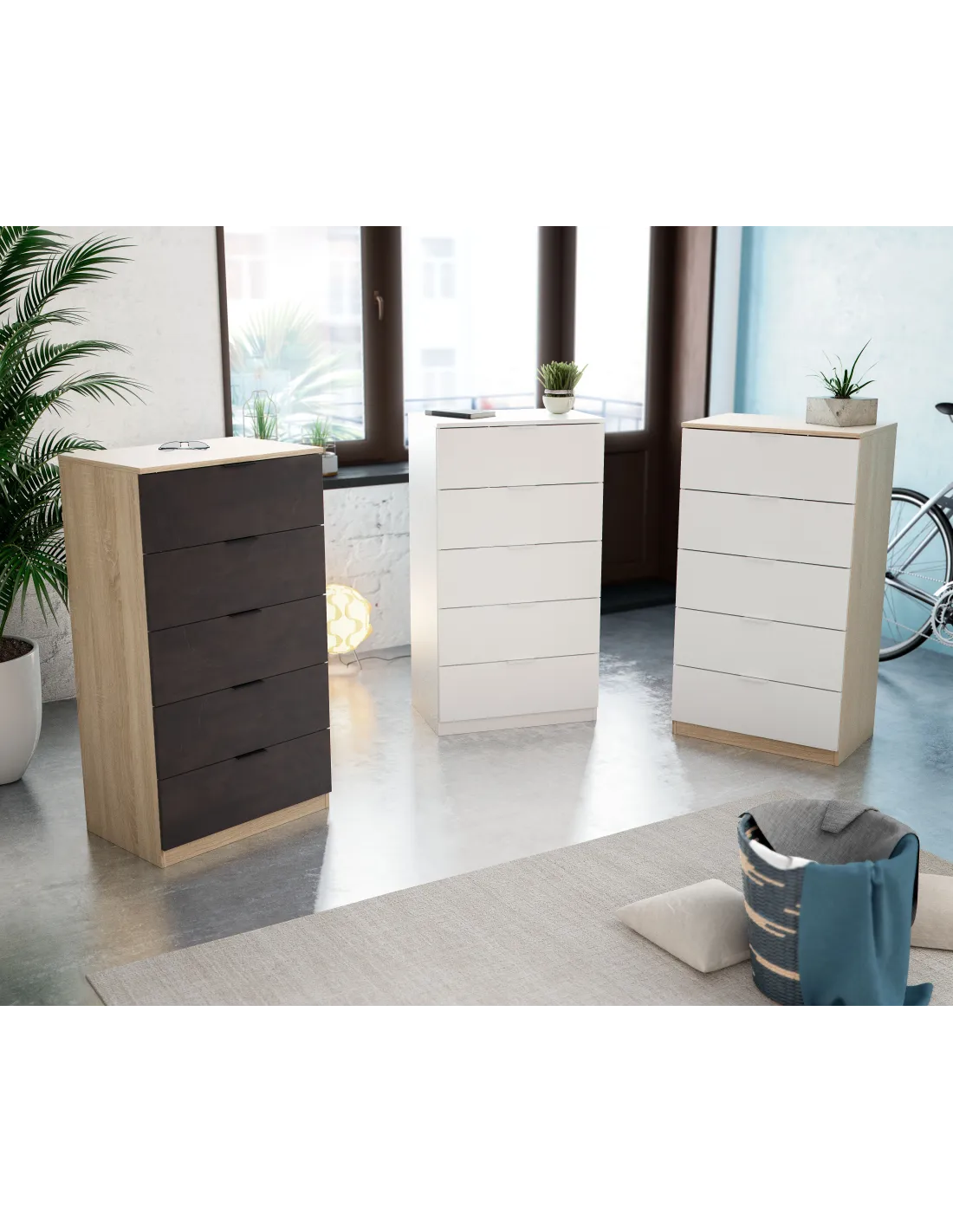 Cómoda con cinco cajones. Una pieza práctica y funcional para el dormitorio que ofrece una amplia capacidad de almacenaje.