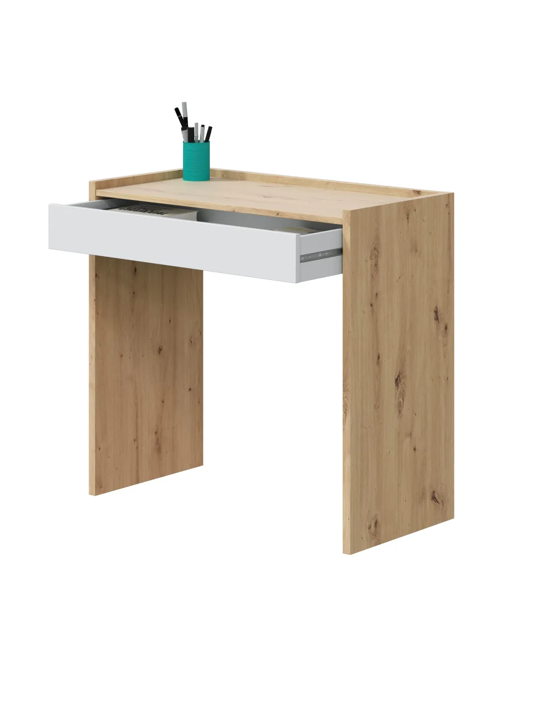 Mesa de estudio con un cajón. Una opción funcional y práctica para crear una zona de trabajo o estudio en el hogar.