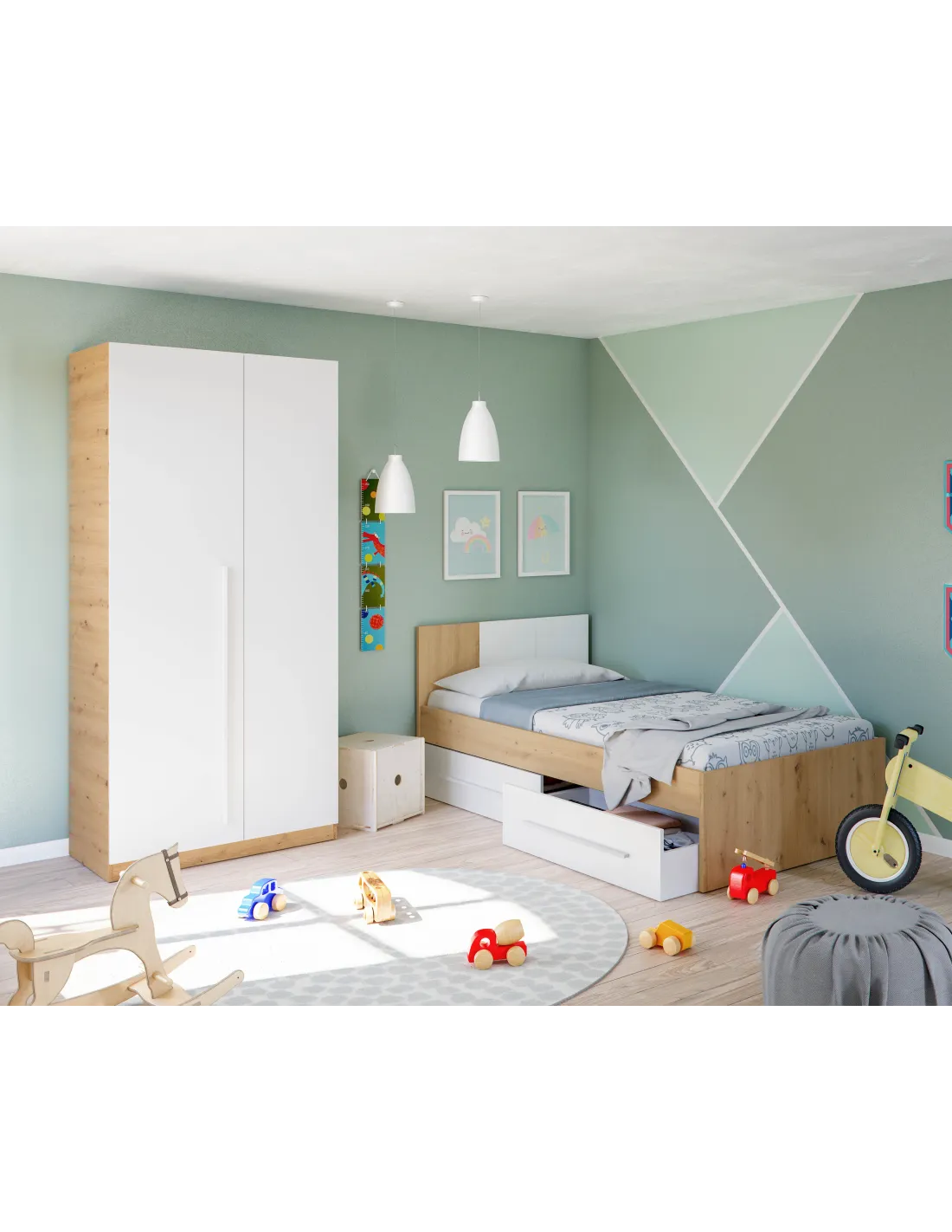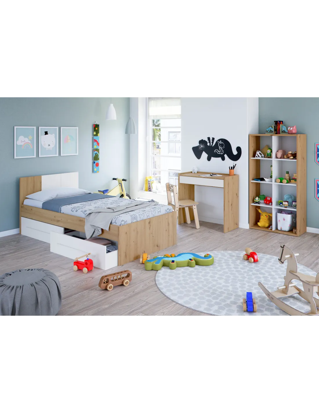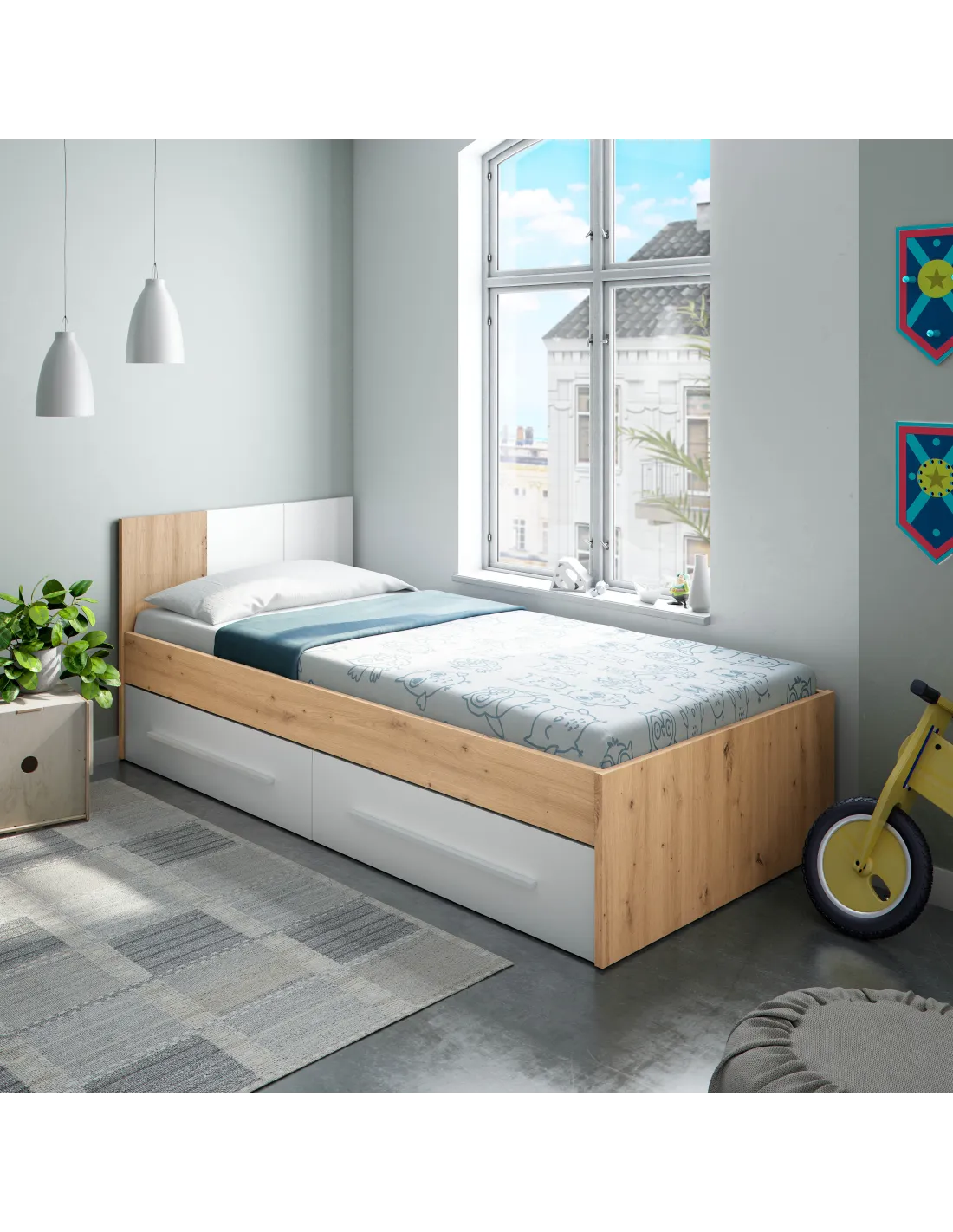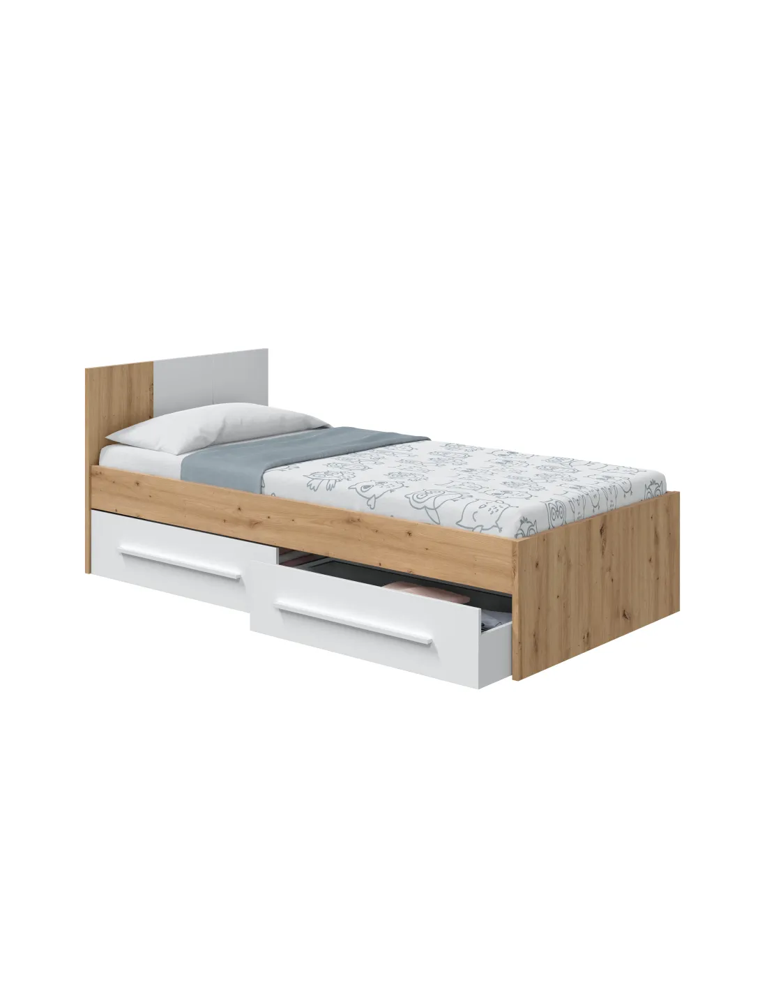 Cama AMBIENT para colchón de 190x90cm con 2 cajones en la parte inferior del mueble, ideal para optimizar el espacio en dormitorios juveniles.