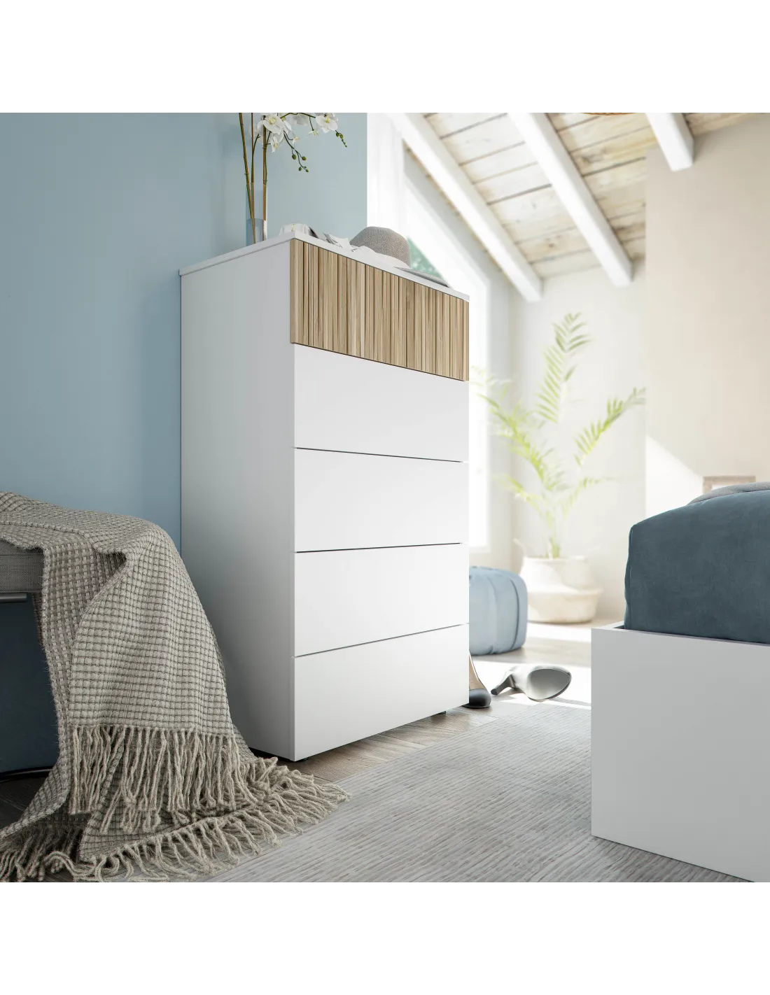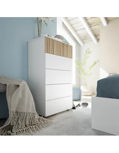 Cómoda TEMPUS con 5 cajones, perfecta para organizar ropa y accesorios en el dormitorio.