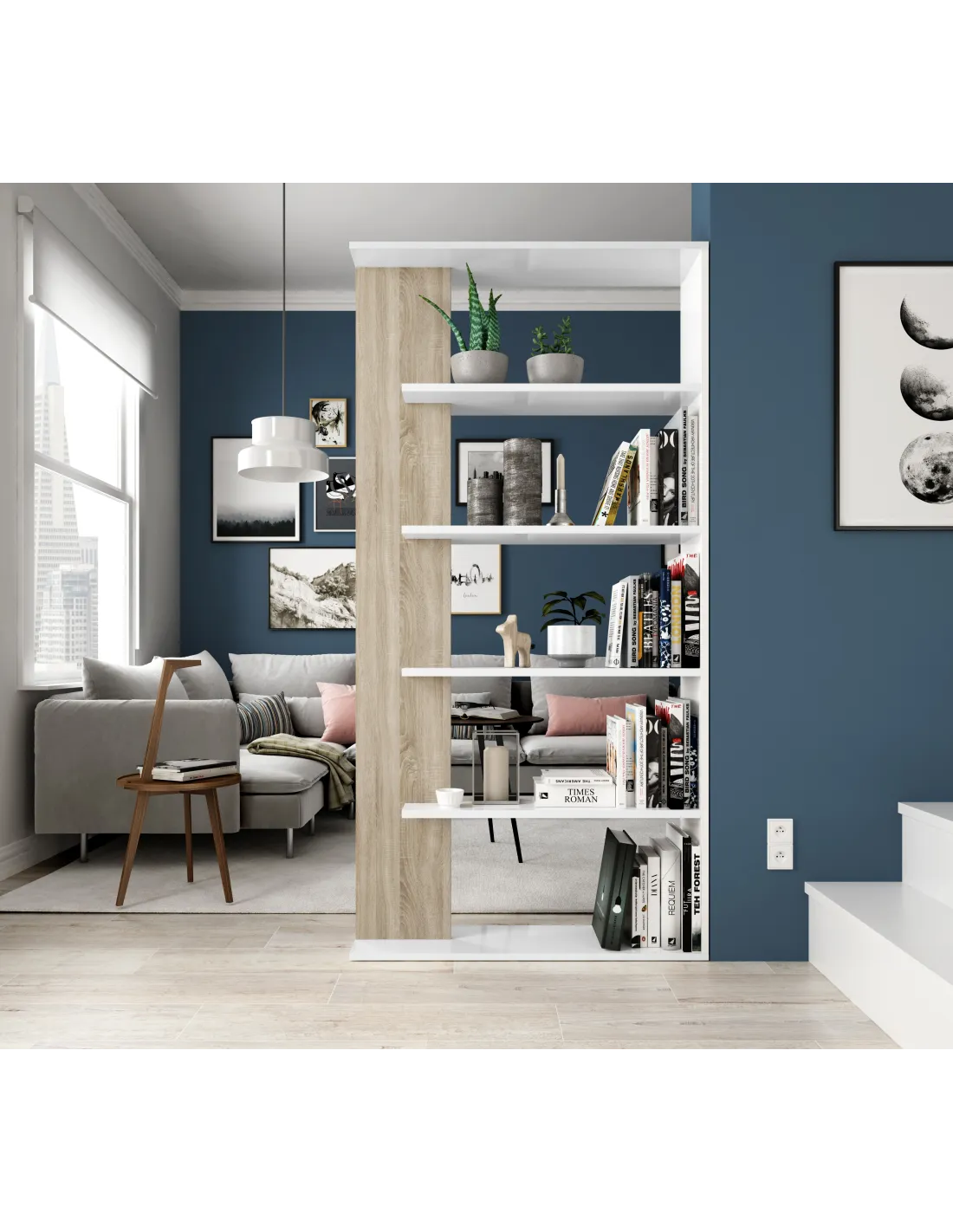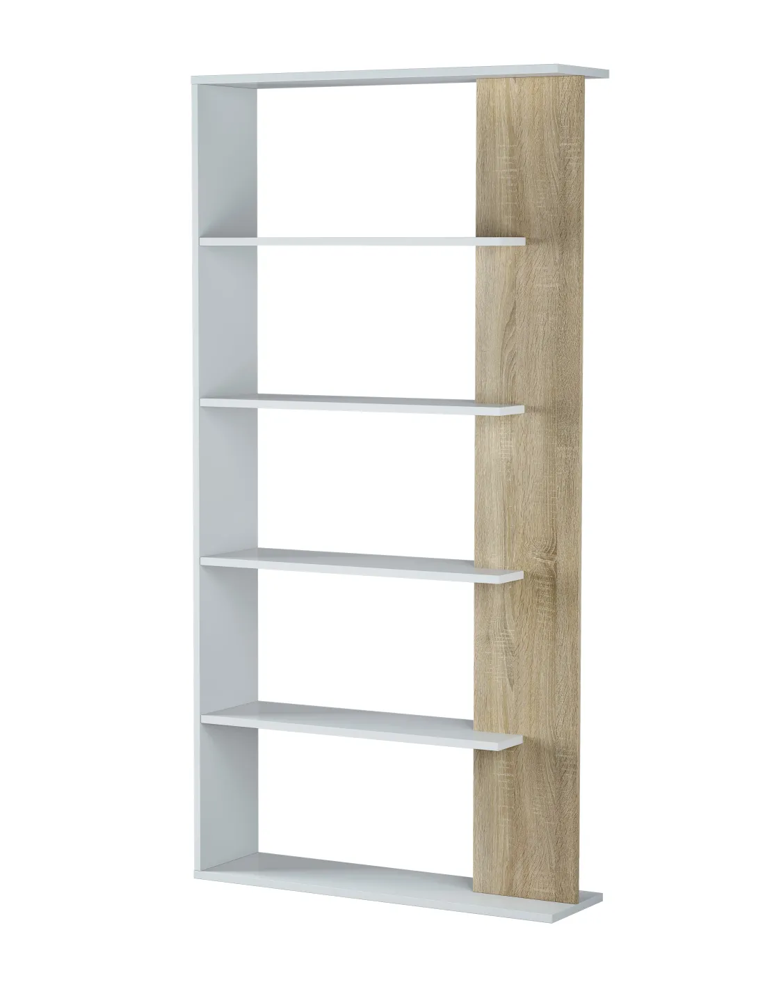 Estantería LORAS alta con 5 estantes, perfecta para organizar libros y objetos decorativos en salón, dormitorio o despacho.