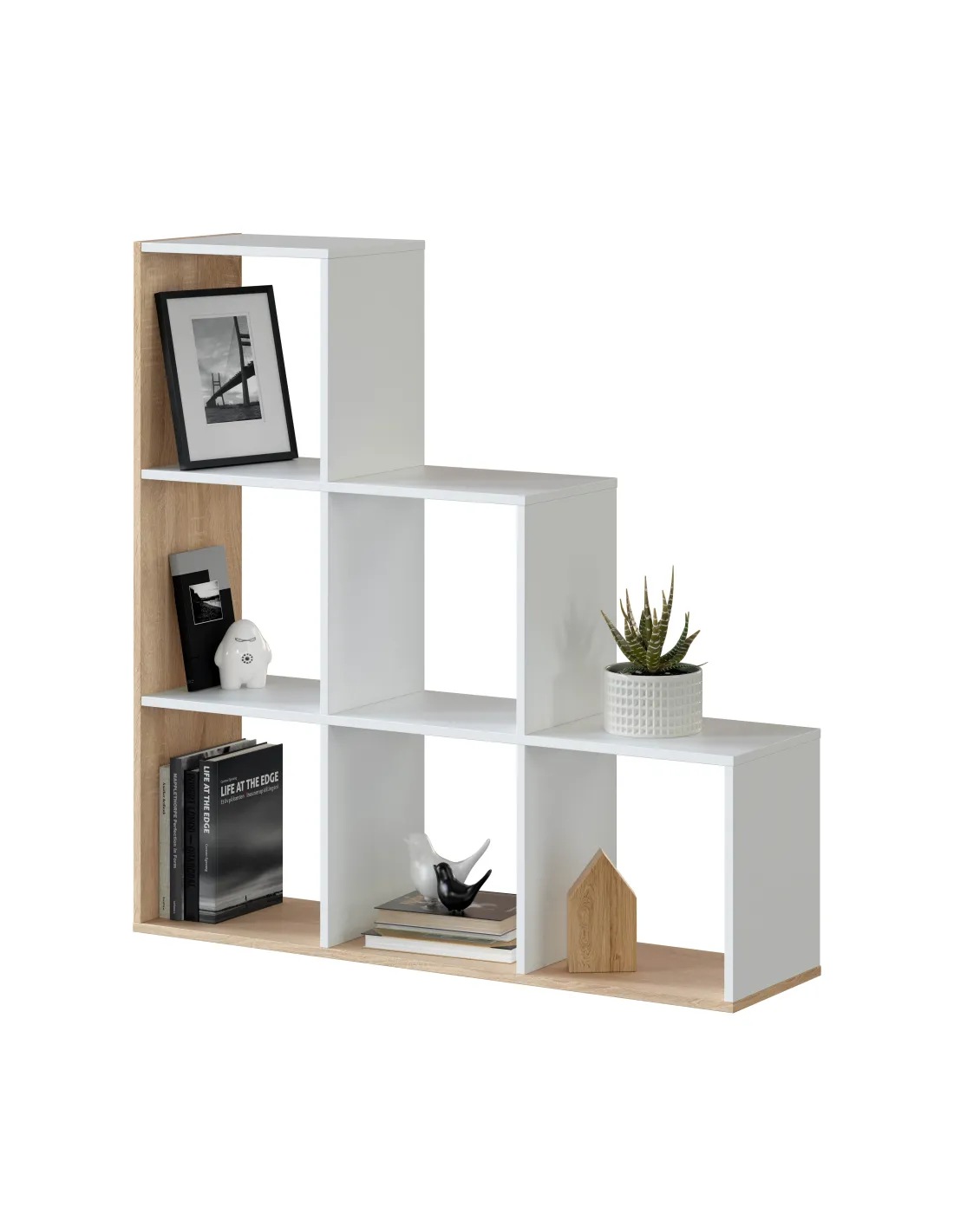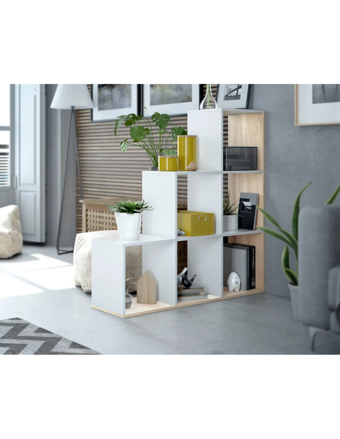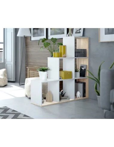 Estantería MULK-PLUS decorativa con 6 huecos, perfecta para organizar libros y objetos decorativos en cualquier estancia.