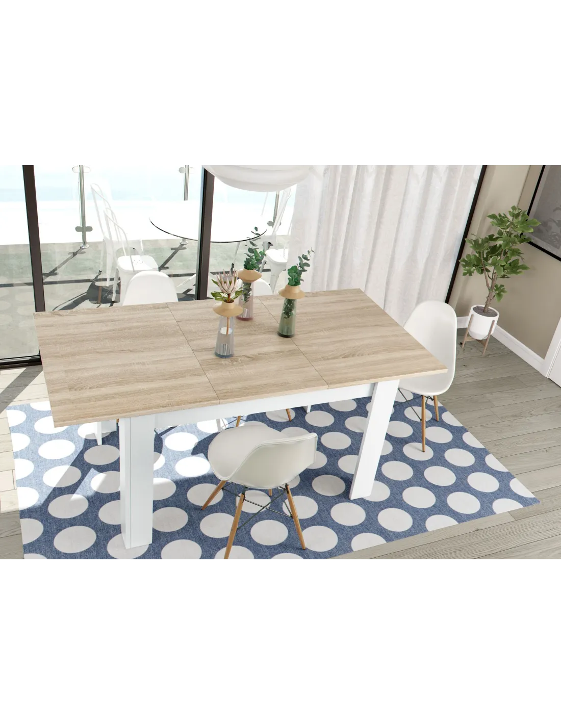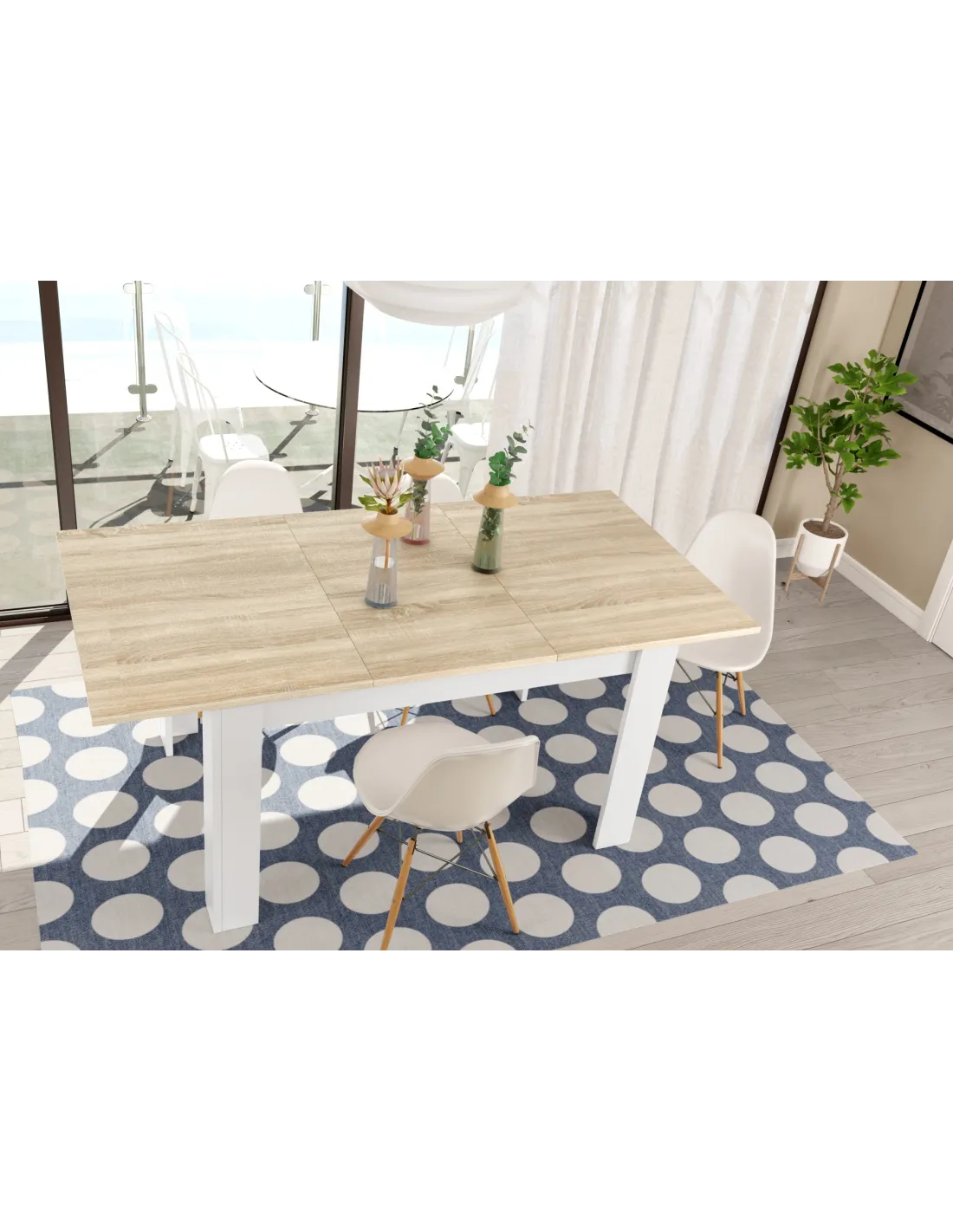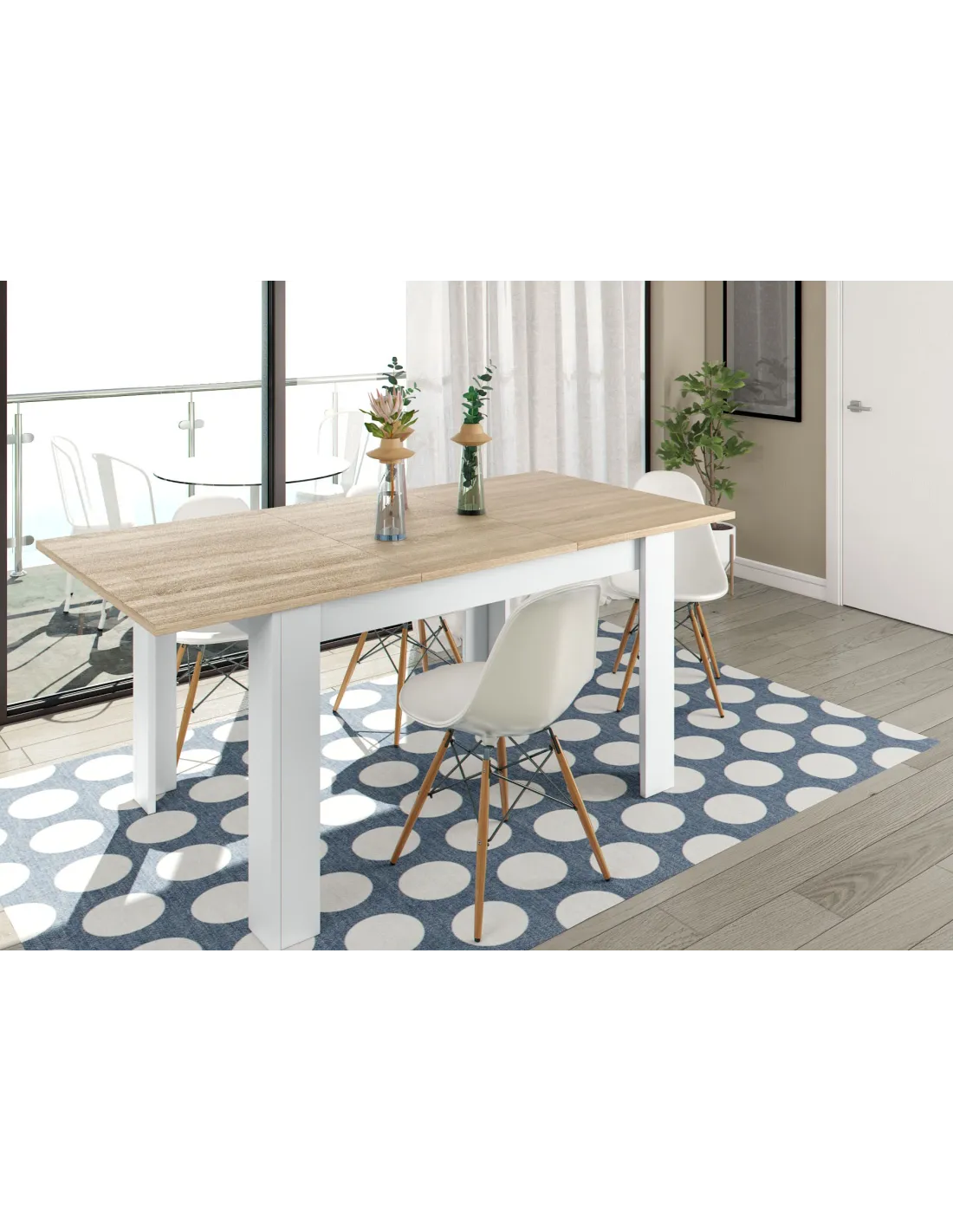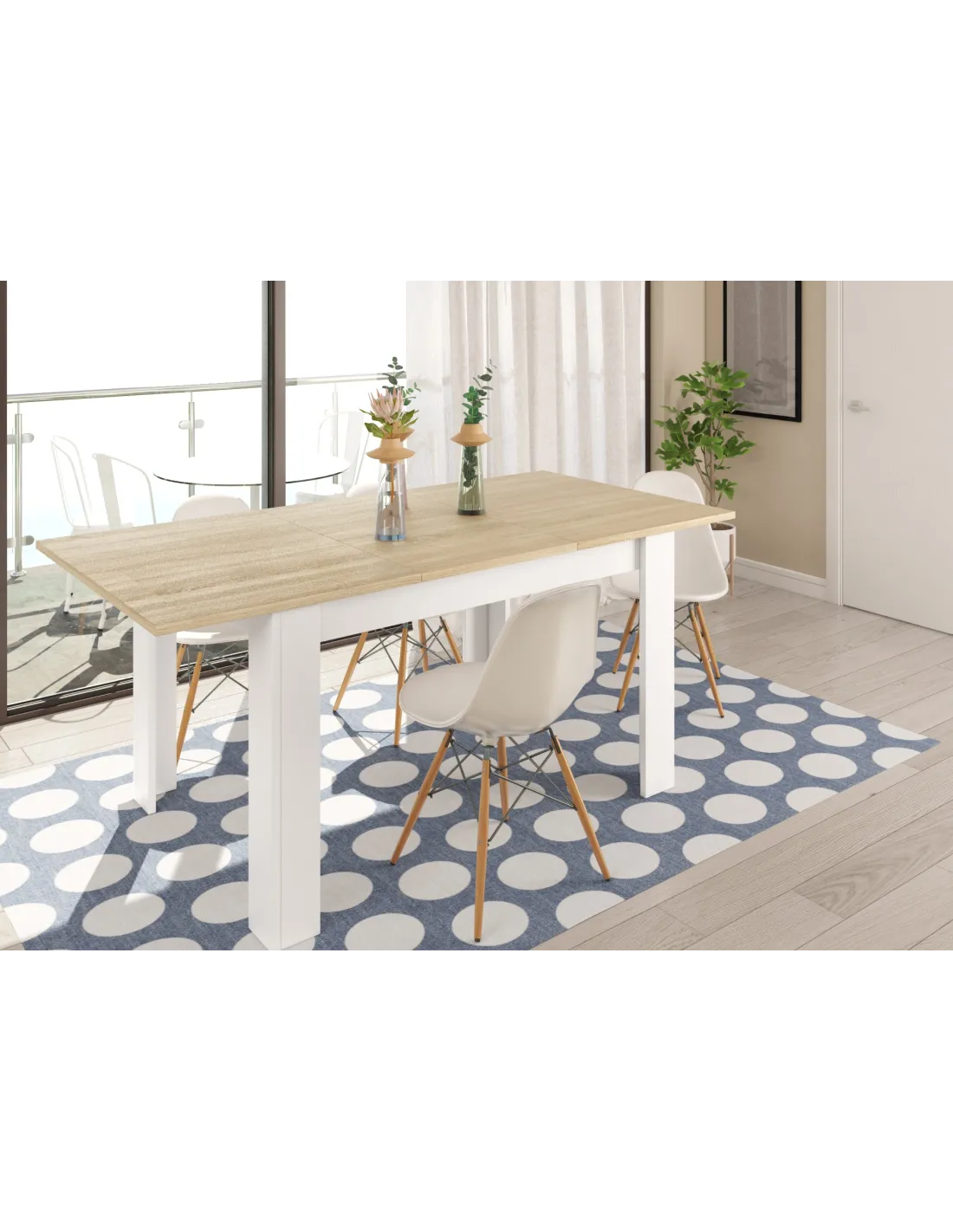 Mesa comedor PRACTICO extensible, perfecta para ampliar la superficie cuando se necesita y optimizar el espacio en el día a día.