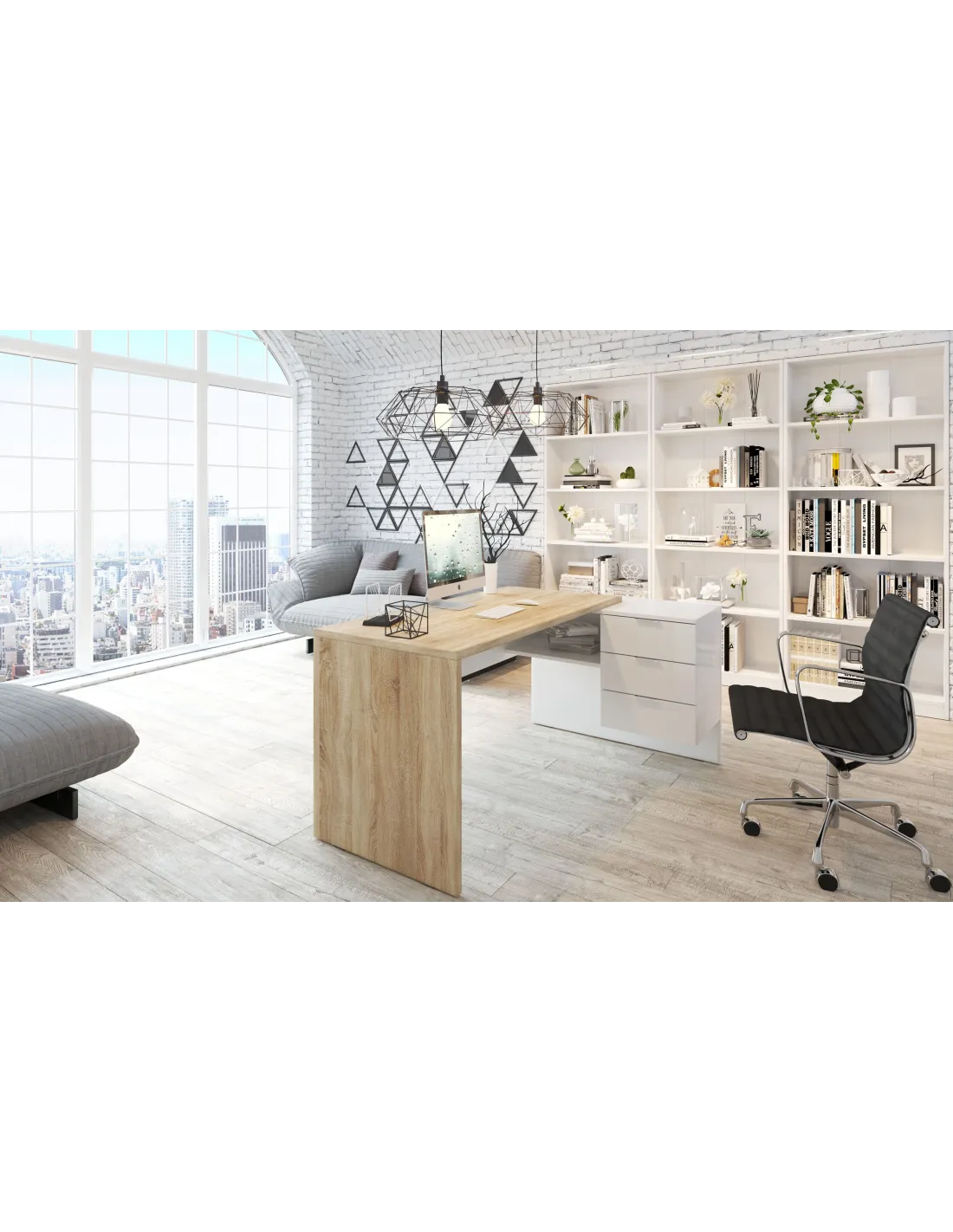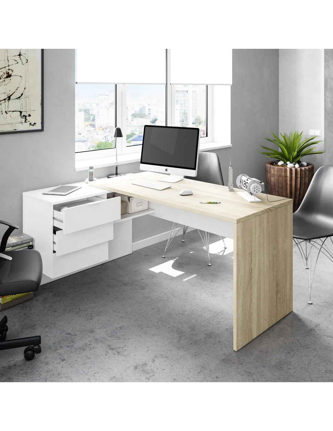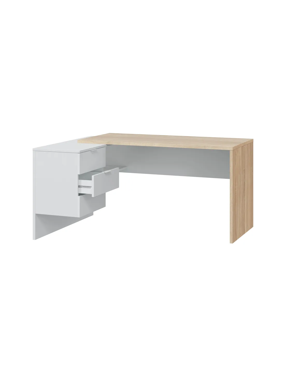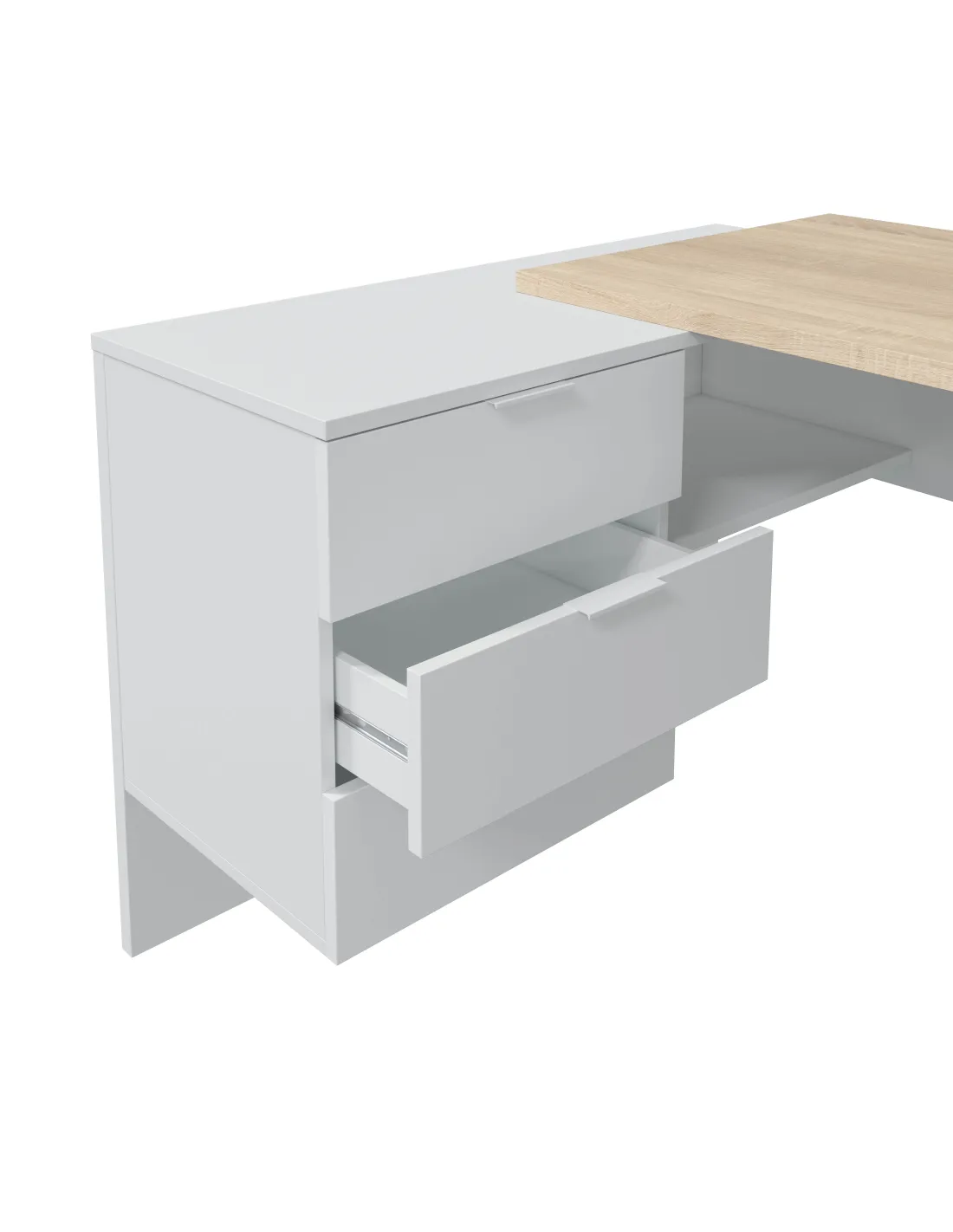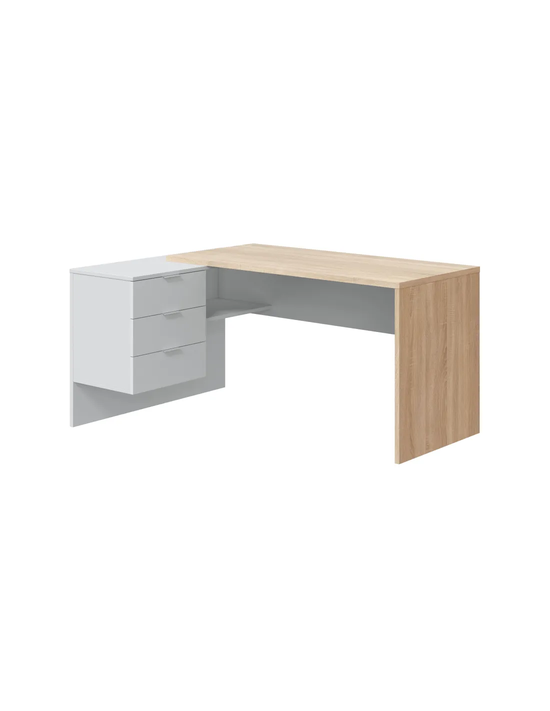 Mesa despacho STYLE con buc de 3 cajones y un hueco abierto, perfecta para organizar documentación y material de oficina.
