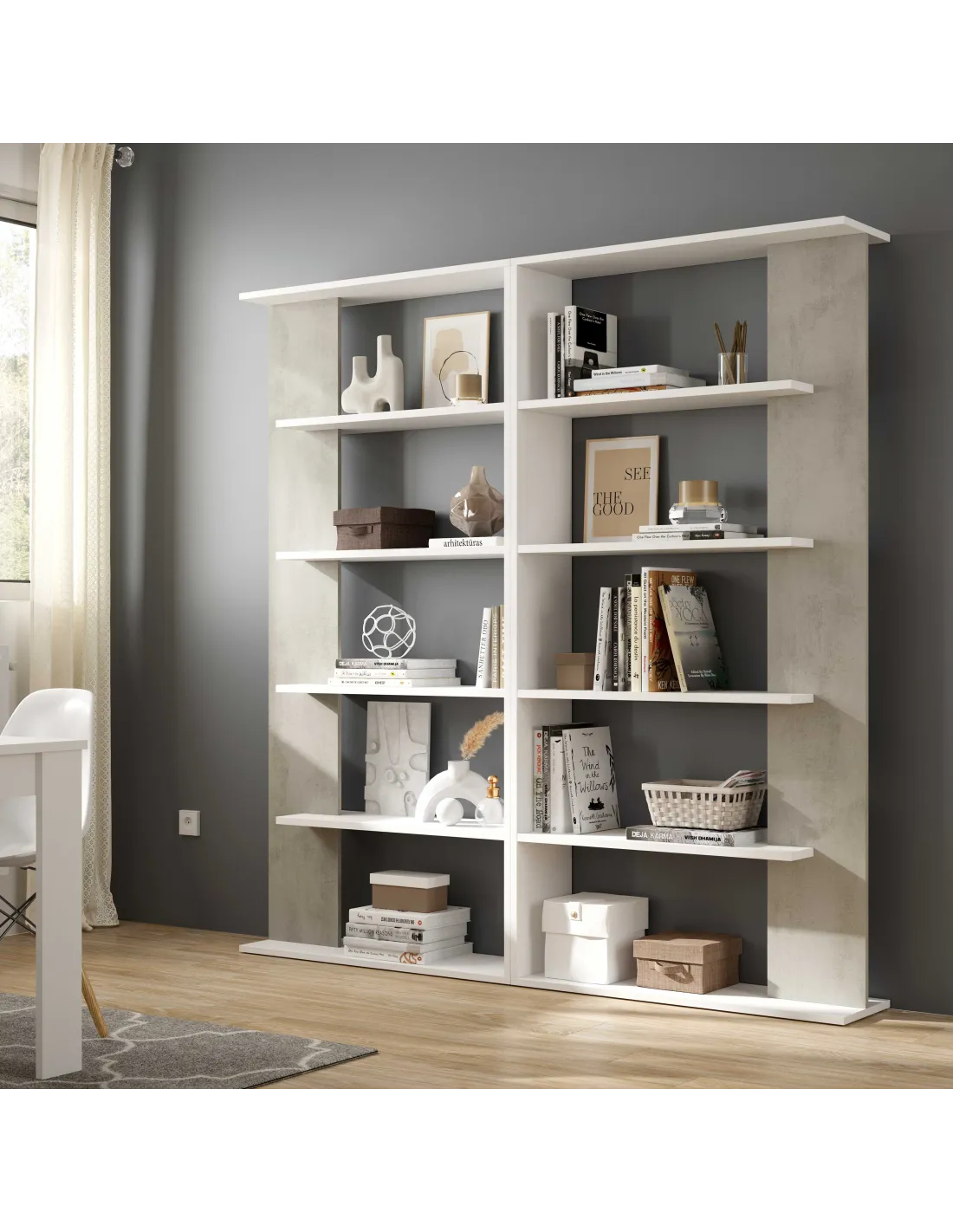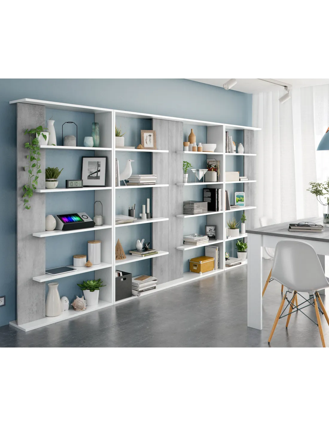 Los estantes no son regulables en altura. Puede utilizarse como separador de ambientes tomando las medidas oportunas, ya que existe posibilidad de volcado.