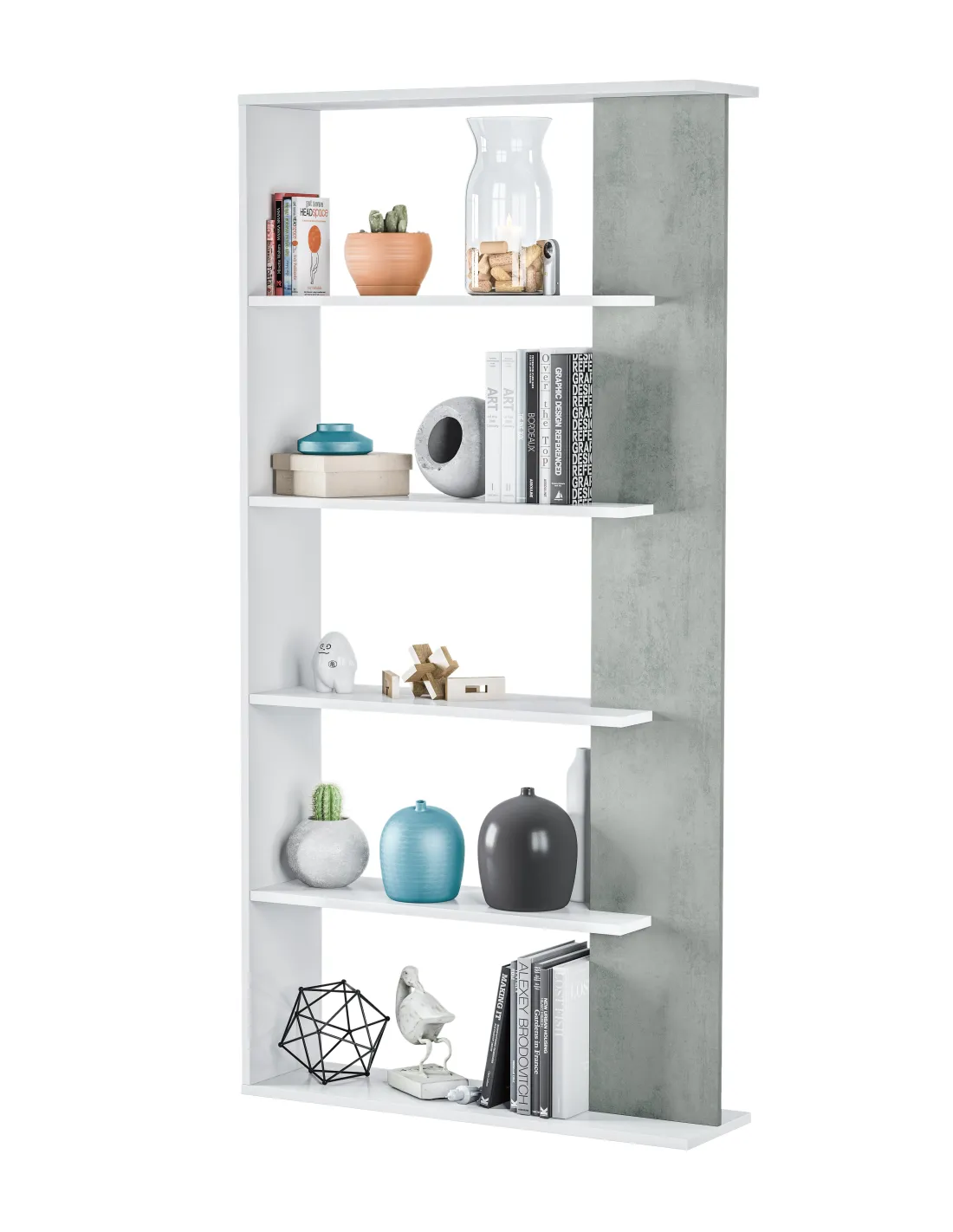 Estantería alta con 5 estantes, ideal para organizar libros, documentos y objetos decorativos en cualquier estancia del hogar u oficina.