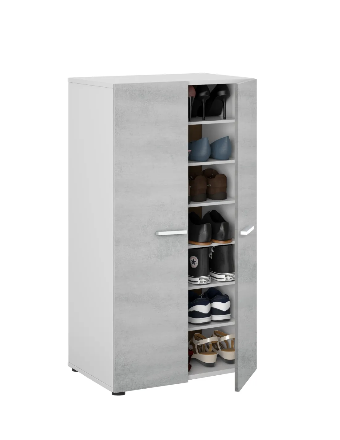 Mueble zapatero con 2 puertas y 6 estantes interiores, ideal para organizar y almacenar calzado de forma práctica y ordenada.