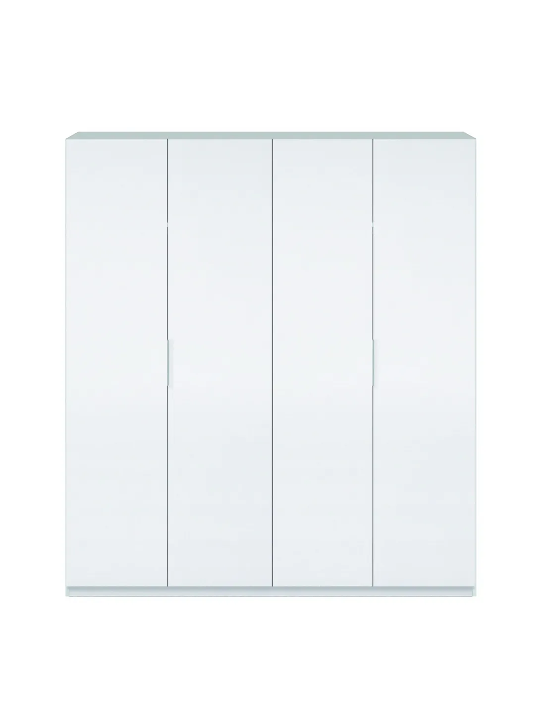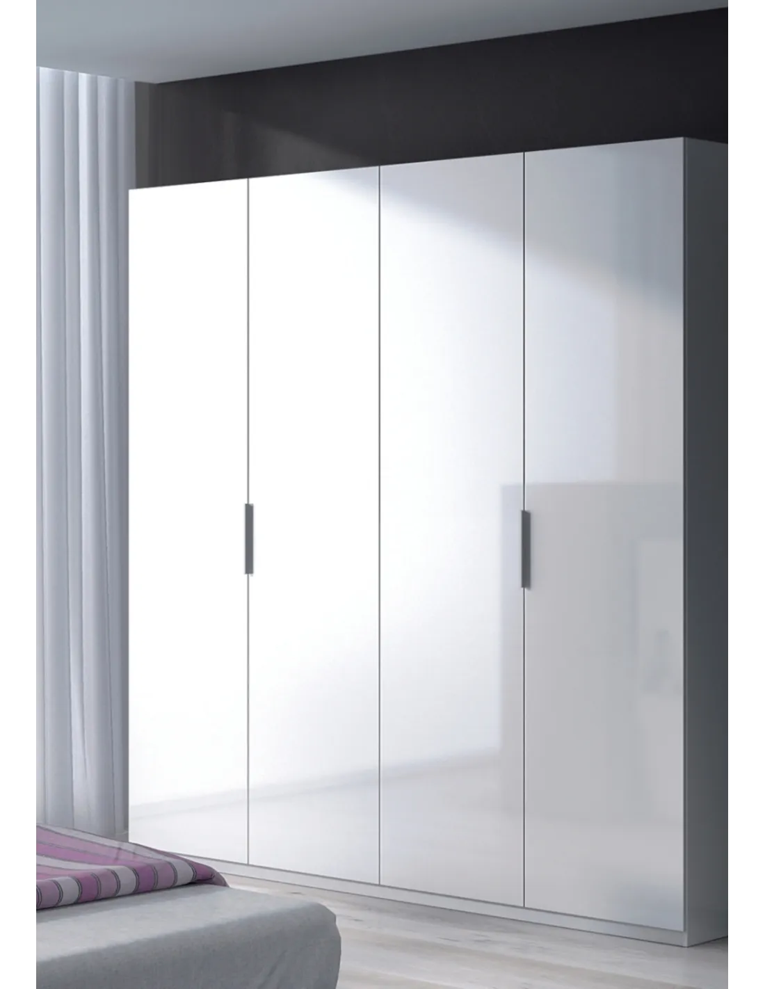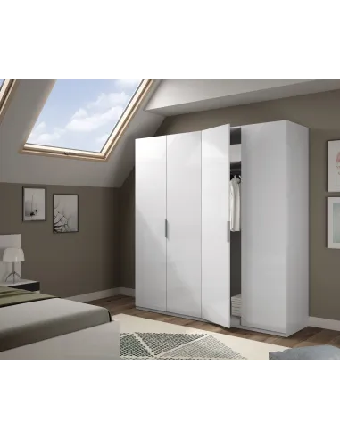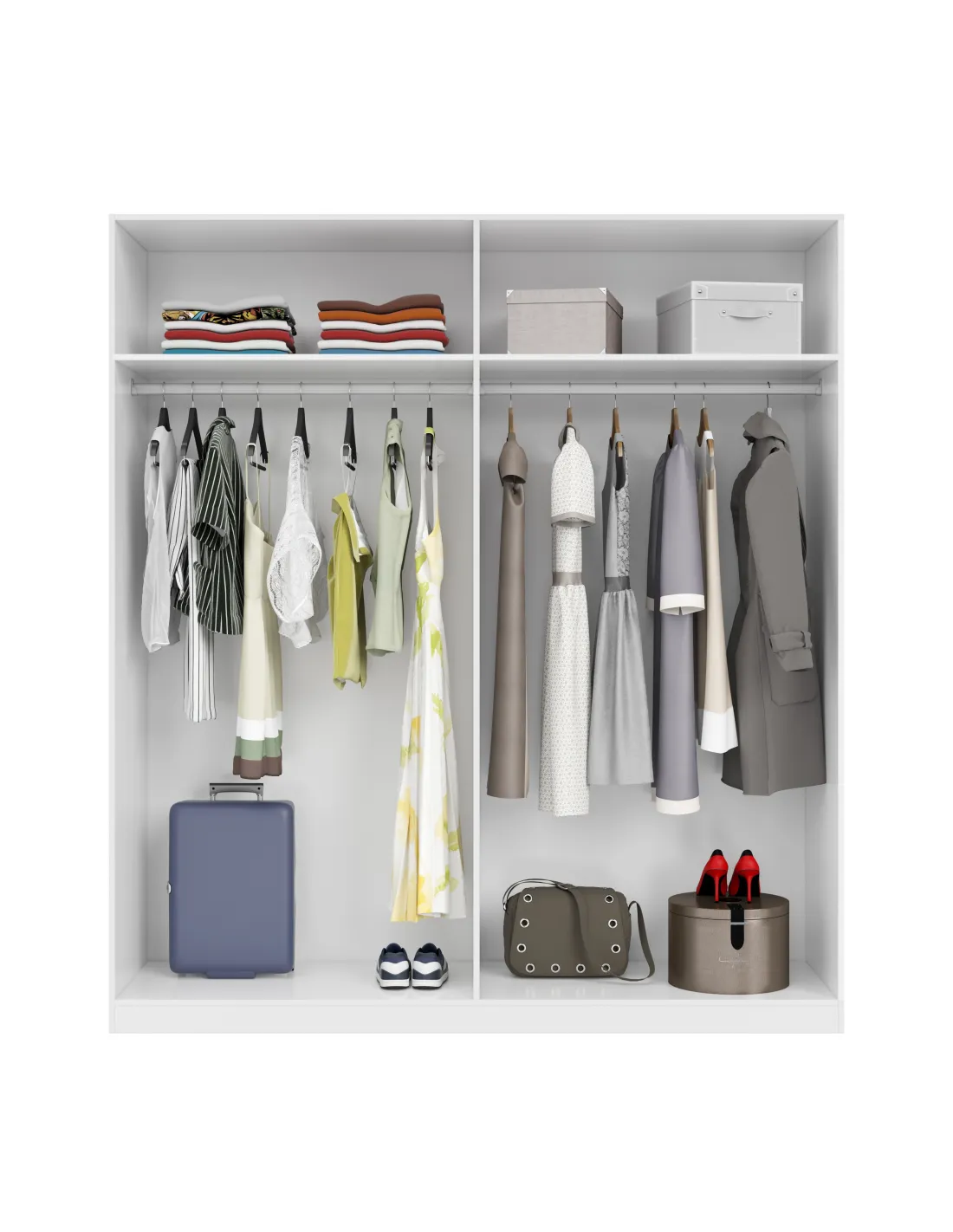 Armario de 4 puertas con 2 barras de colgar y 2 estantes en su interior, ideal para organizar ropa y complementos con una distribución práctica.