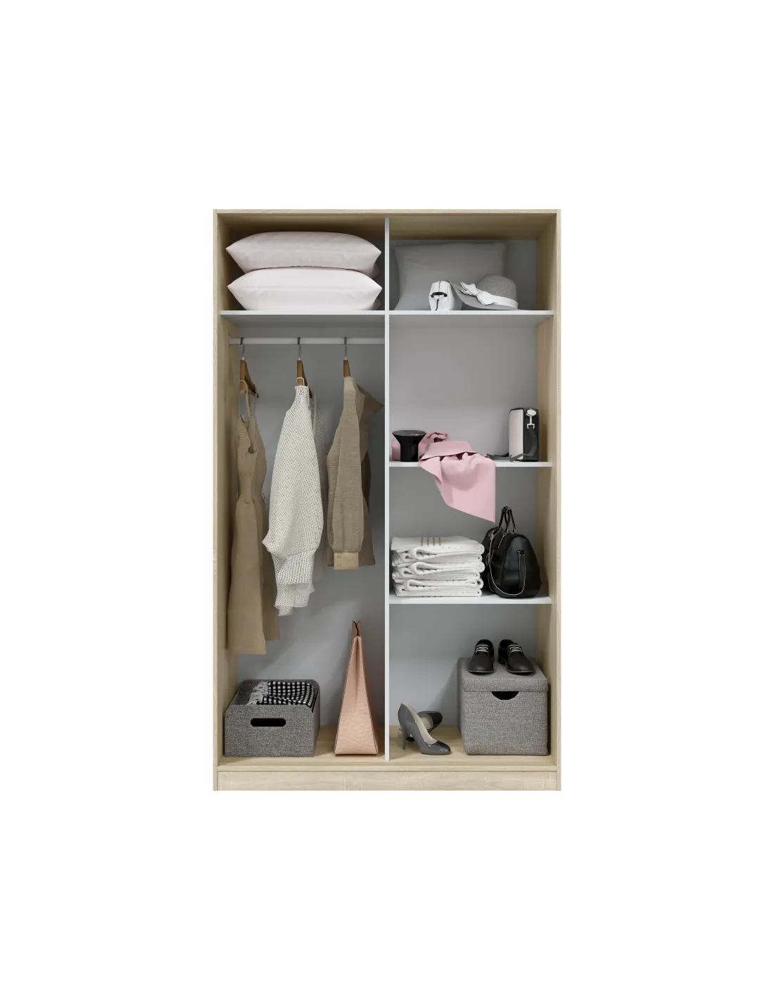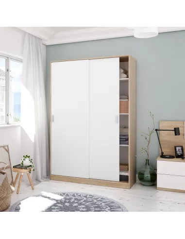 Incorpora bisagras metálicas para las puertas, tiradores de aluminio y tacos ABS quitarruidos y antirayas para la parte inferior del mueble, aportando estabilidad y protección al suelo. Dispone de huecos pasacables en la parte trasera para facilitar la organización de los cables.