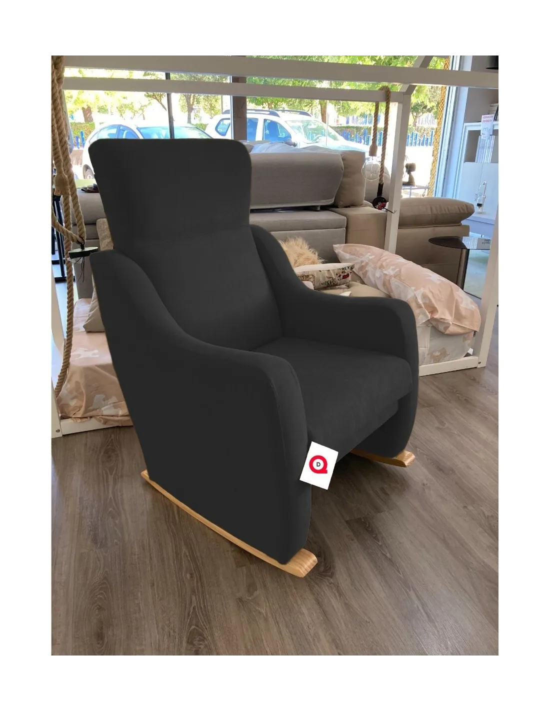 Increíble butaca mecedora de estilo clasico que presenta un respaldo con orejeras para garantizar el confort y el descanso.