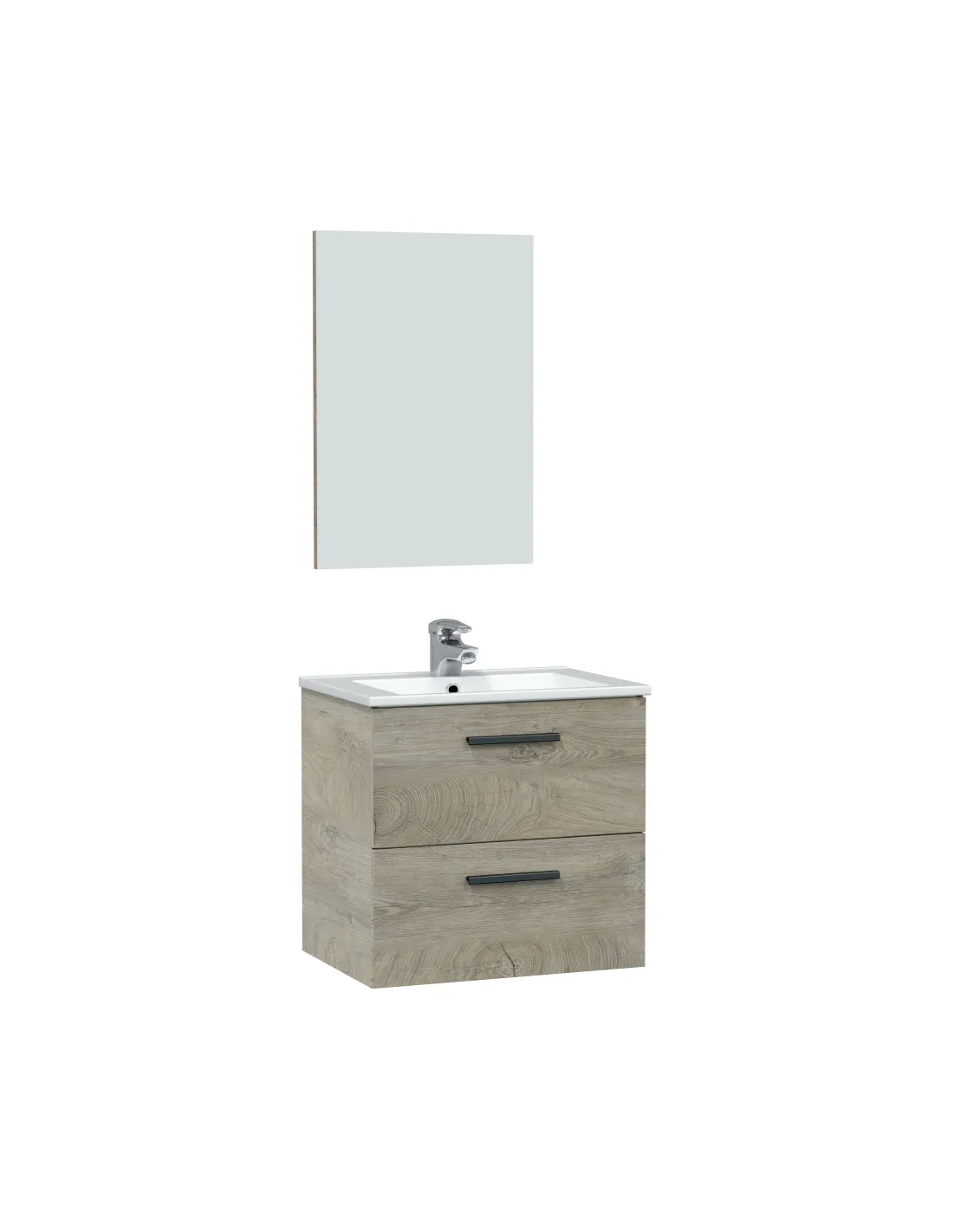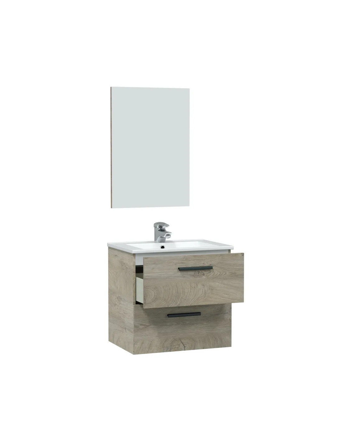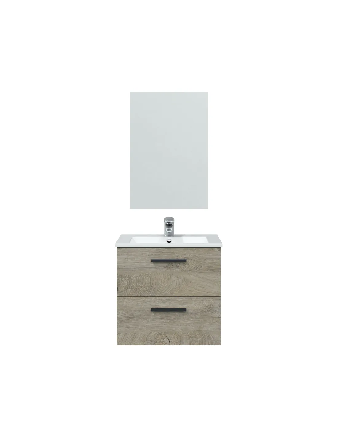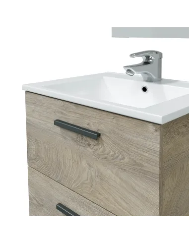 Mueble de baño para colgar en pared con 2 cajones. Incluye espejo del mismo acabado para un conjunto coordinado.