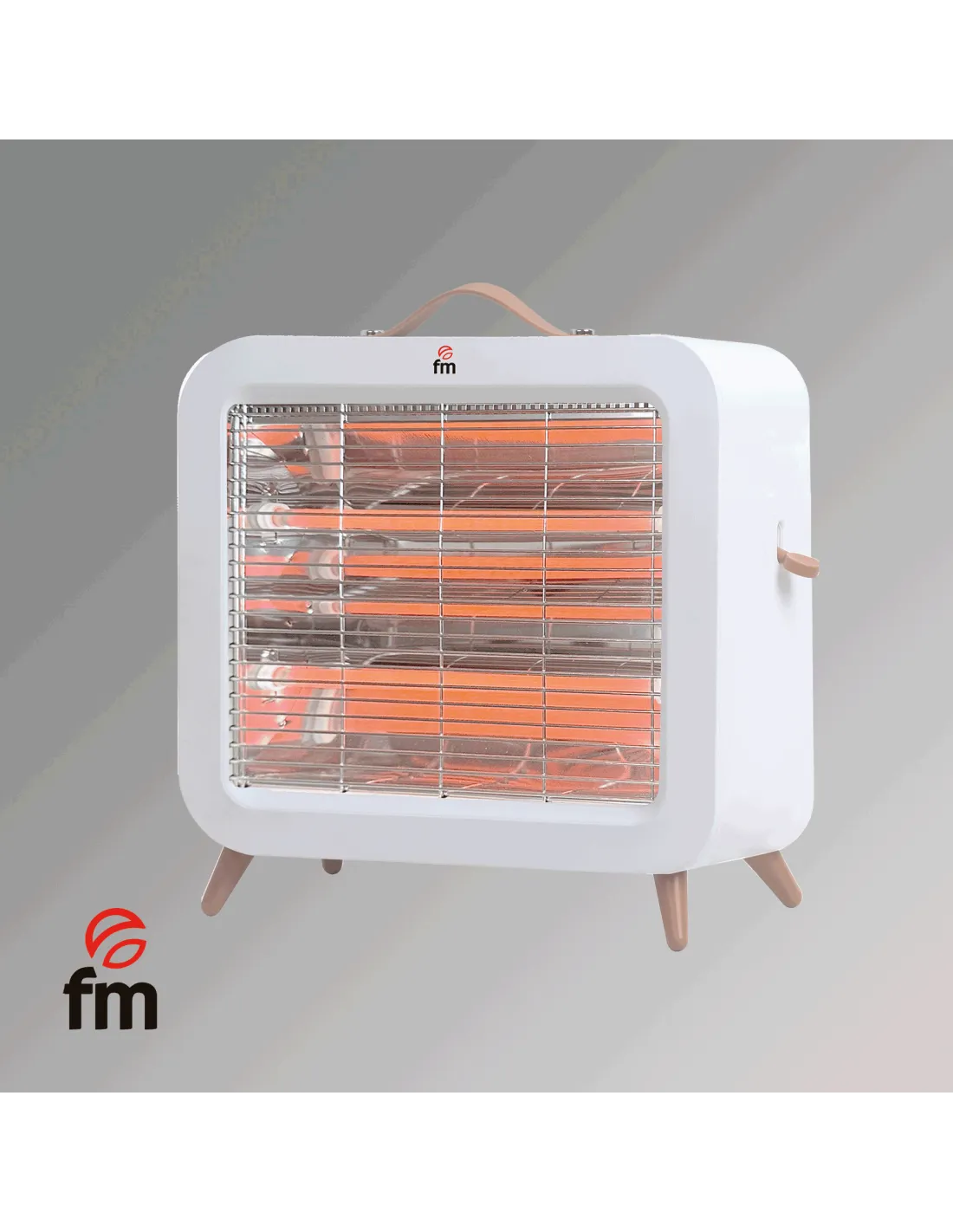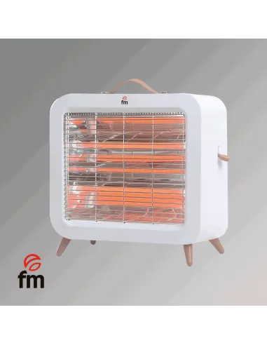 La estufa de cuarzo FM EV-700 ofrece mayor potencia sin renunciar a su diseño compacto y decorativo. Con 700W y dos barras de cuarzo, proporciona un calor rápido y agradable, ideal para estancias pequeñas y medianas. Su estética moderna con asa superior y patas en acabado madera la convierte en una opción funcional que además aporta estilo al espacio.