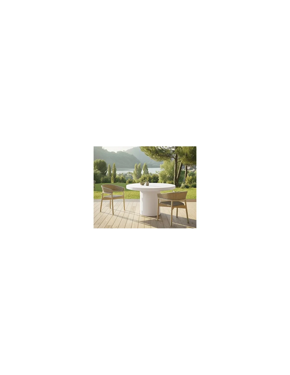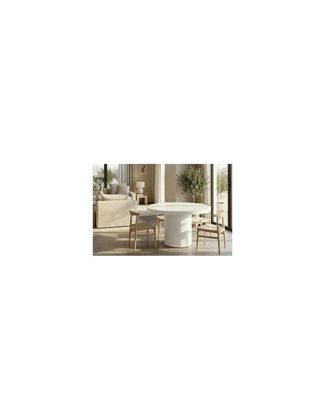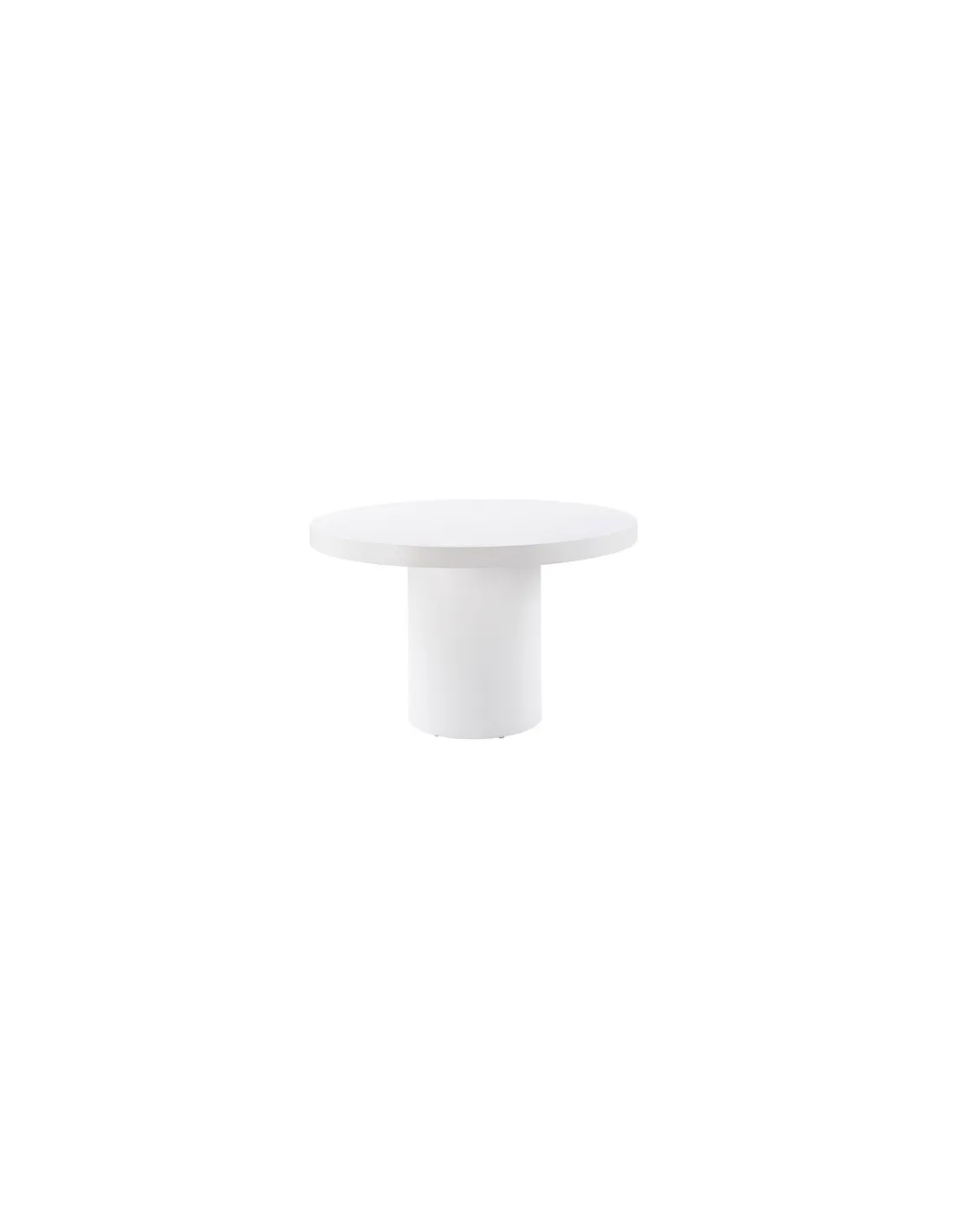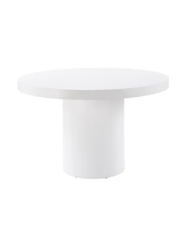 Mesa redonda exterior bajo techo / interior Acabado en microcemento Color blanco liso Medidas : 120 x 120 x 75 cm - Unidad venta : caja 1 Ud - Volumen : 0 474 M 3 x Ud Entradas previstas : 30 Ud(s) - 30/04 Colores disponibles : Blanco 30 Ud(s) - 30/04 30 Ud(s) - 30/04