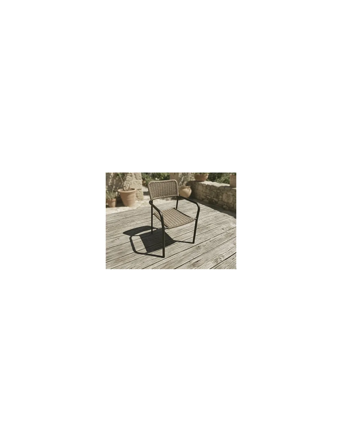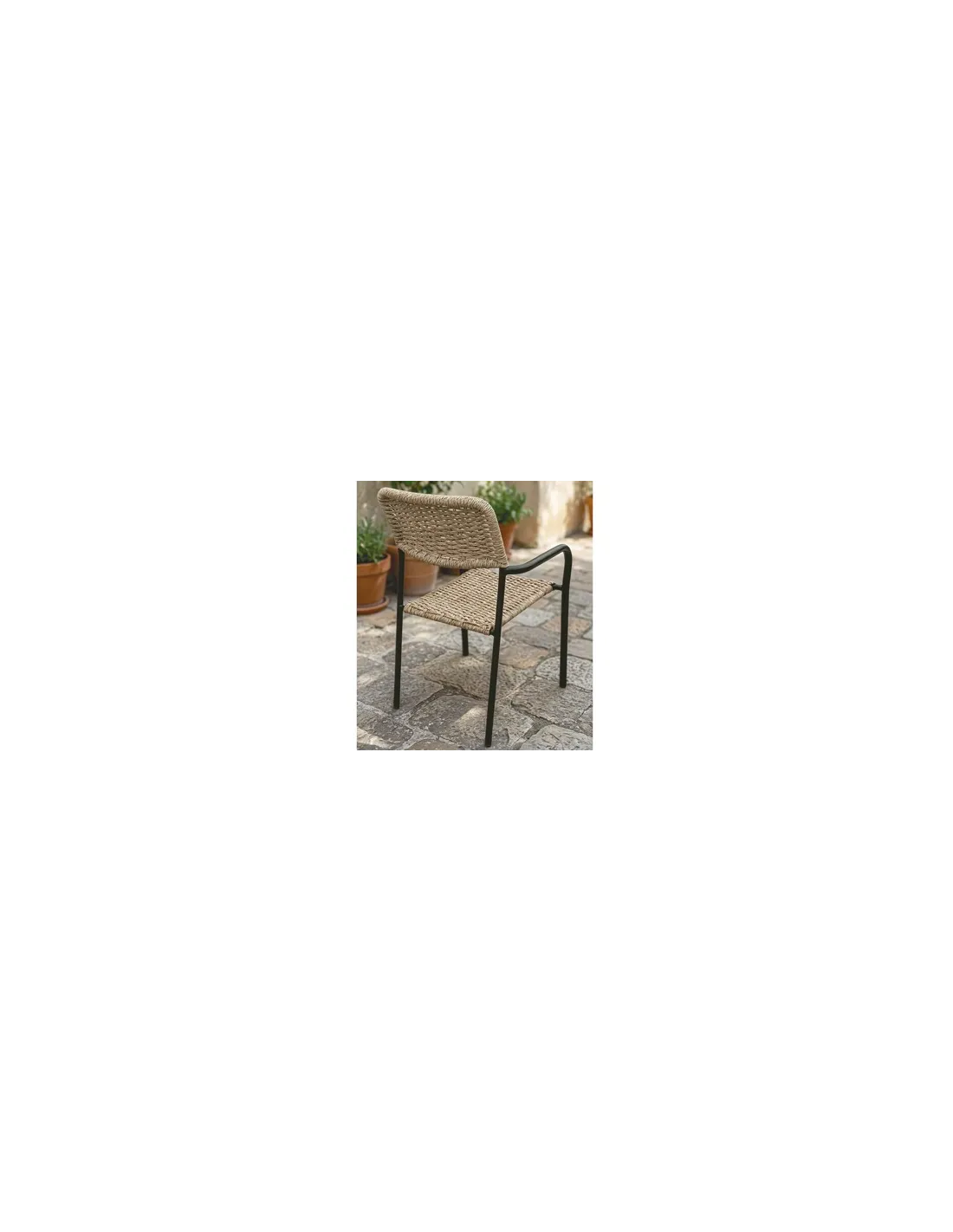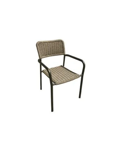 Sillón de exterior Asiento y respaldo en mimbre Estructura metálica color negro Apilable Medidas : 56 x 59 x 84 cm - Unidad venta : caja 2 Uds - Volumen : 0 034 M 3 x Ud Entradas previstas : 1400 Ud(s) - 14/04 Colores disponibles : Mimbre / Negro 1400 Ud(s) - 14/04 Mimbre / Blanco 343 Ud(s) - 14/04 1400 Ud(s) - 14/04