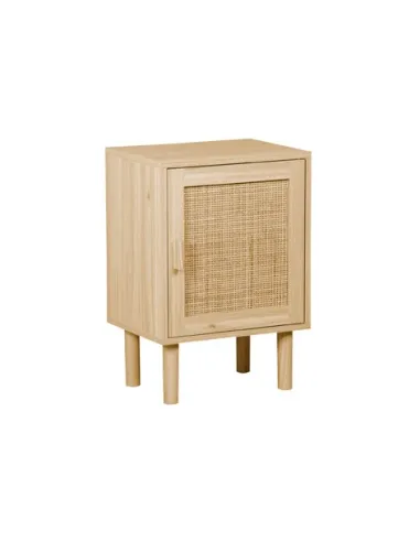 Mesilla de noche 1 puerta con panel decorativo en rattán Balda interior divisoria Melamina color pino Patas en madera de pino Medidas: 40 x 30 x 58 cm - Unidad venta : caja 1 Ud - Volumen : 0 01449 M 3 x Ud Entradas previstas : Colores disponibles : Pino / Rattan En stock : 231 Uds En stock : 231 Uds