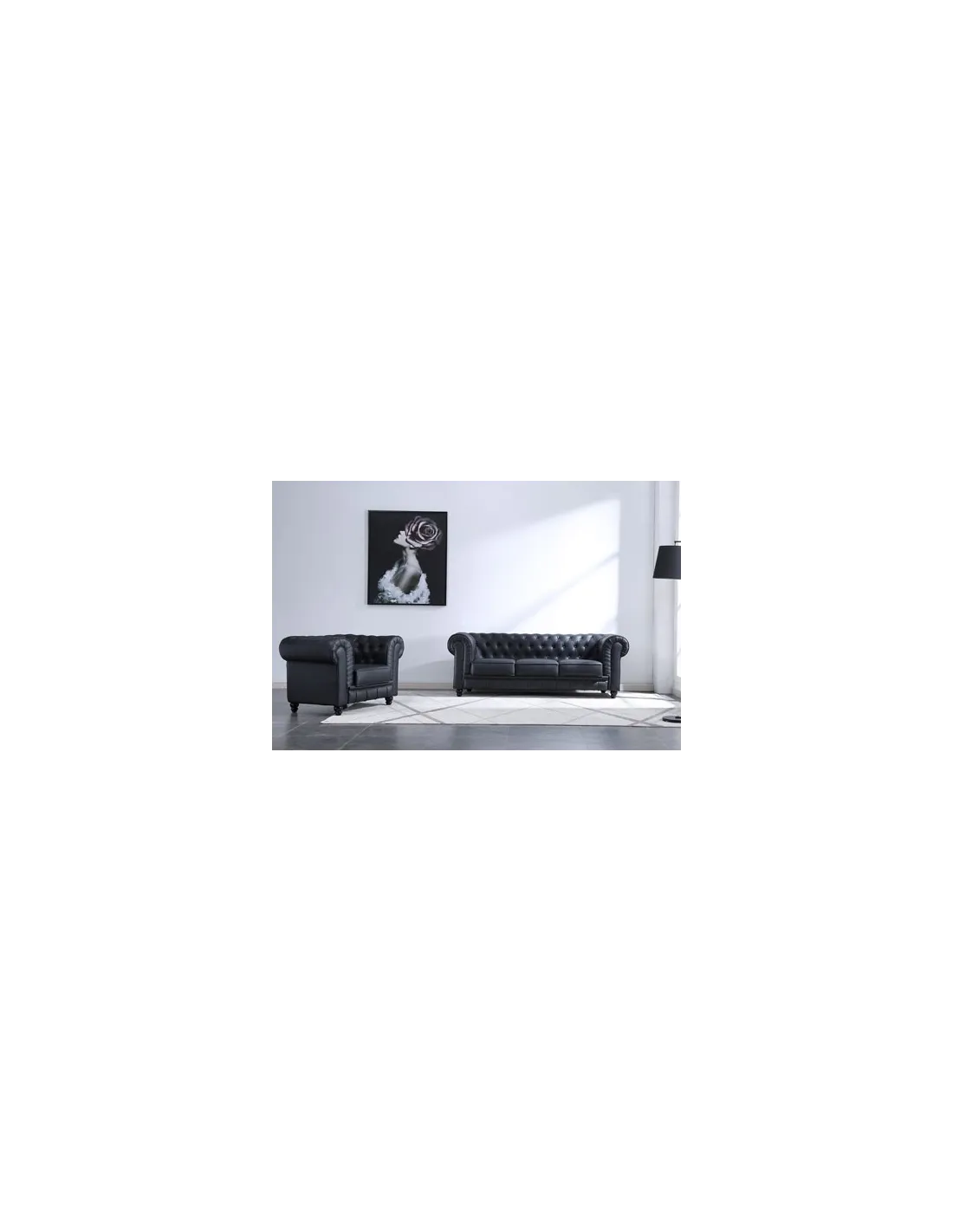 Sofá diseño clásico Chesterfield 3 plazas Acabado capitoné con botones tapizados Tejido símil piel Medidas: 205 x 82 x 72 cm - Unidad venta : caja 1 Ud - Volumen : 1 245 M 3 x Ud Entradas previstas : 7 Ud(s) - 15/03 4 Ud(s) - 6 / 8 semanas Colores disponibles : Símil piel negro 7 Ud(s) - 15/03 Chocolate vintage En stock : 2 Uds Velvet verde En stock : 5 Uds 7 Ud(s) - 15/03