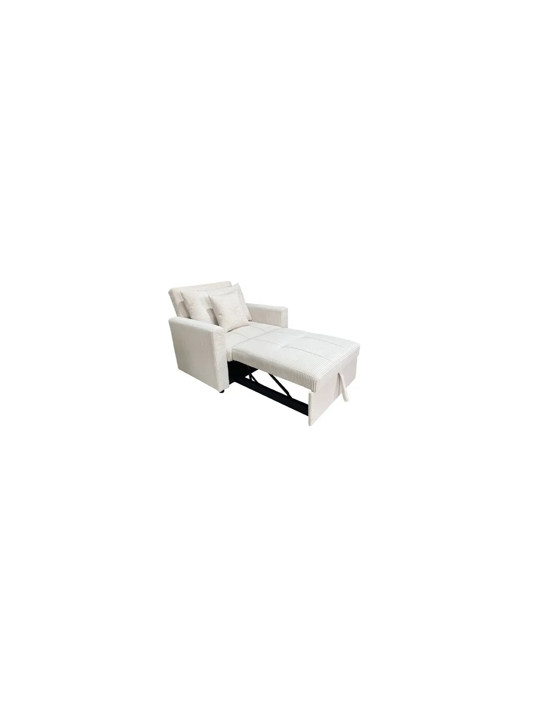 Sillón cama Diván tapizado Uso como sillon 1plaza, chaiselongue 1 plaza o cama Respaldo reclinable Reposapiés extensible Ideal como cama supletoria 80 x 197 cm Cojines respaldo / almohada incluidos Tejido corduroy crema Medidas : 99 x 99 x 88 cm / cama 80 x 197 x 47 cm - Unidad venta : caja 1 Ud - Volumen : 0 46 M 3 x Ud Entradas previstas : 39 Ud(s) - 22/03 Colores disponibles : Corduroy crema En stock : 20 Uds Corduroy gris En stock : 43 Uds En stock : 20 Uds