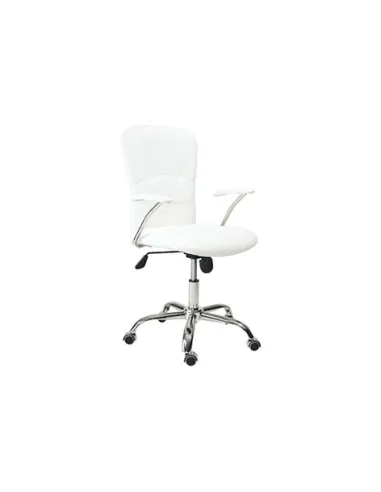 Silla giratoria modelo Maggie Tapizada en símil piel Mecanismo basculante con bloqueo Estructura y brazos cromados - Unidad venta : caja 1 Ud - Volumen : 0 097 M 3 x Ud Entradas previstas : 93 Ud(s) - 15/03 Colores disponibles : Símil piel blanco 93 Ud(s) - 15/03 93 Ud(s) - 15/03