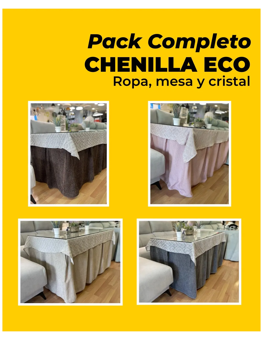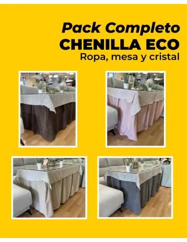 Conjunto Mesa Cristal Ropa Chenilla Eco 8 Pliegues Colores Variados (Incluye tapete de regalo)