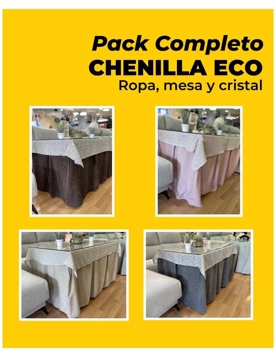 Mesa Camilla Rectangular o Cuadrada completa | Mesa + faldillas + Cristal
