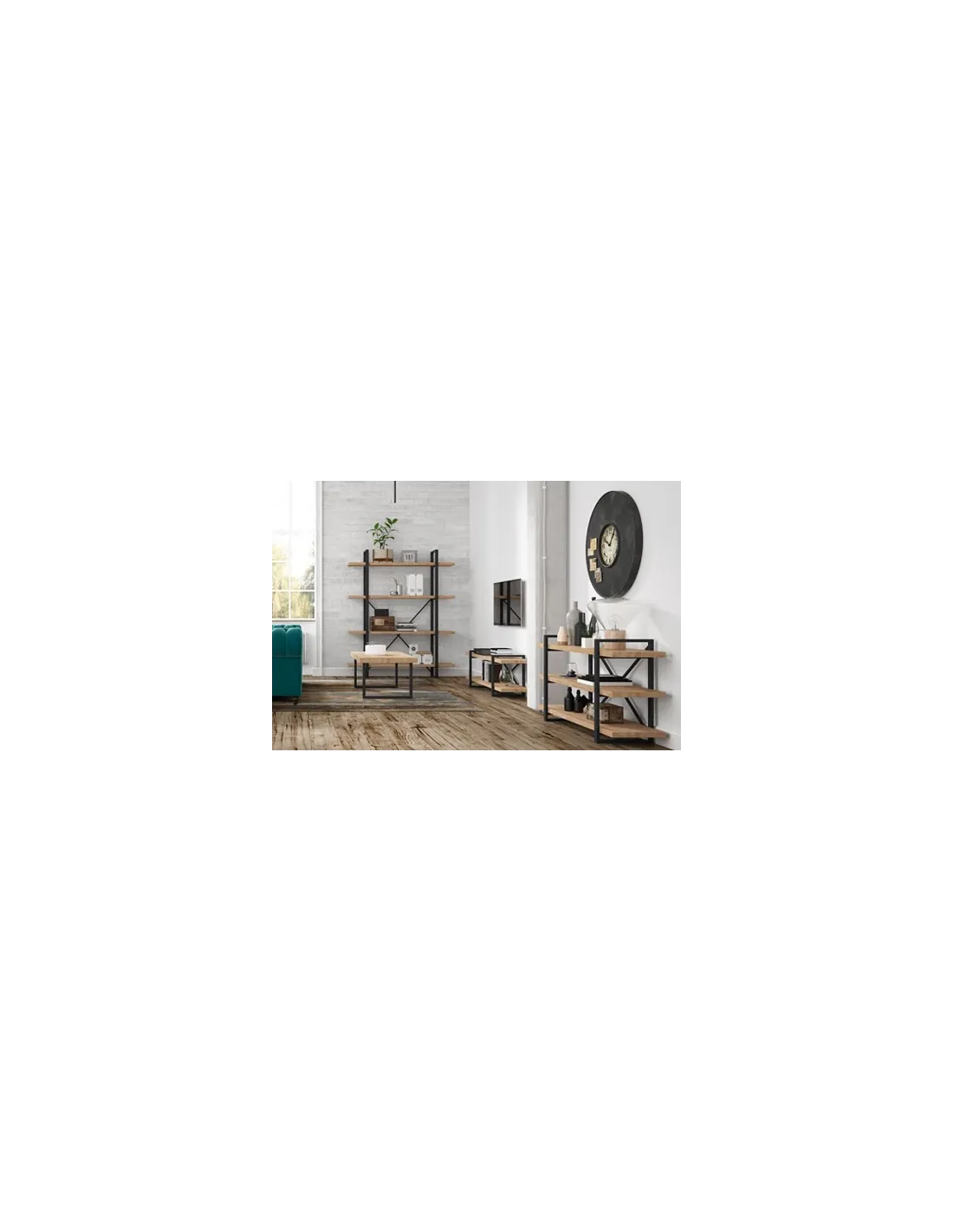 Estantería alta Plank 4 estantes en madera roble salvaje Estructura metálica color negro Medidas: 150 x 30 x 180 cm - Unidad venta : caja 1 Ud - Volumen : 0 182 M 3 x Ud Entradas previstas : 10 Ud(s) - 15/03 Colores disponibles : Roble nordish / negro En stock : 33 Uds Roble american / negro En stock : 19 Uds En stock : 33 Uds