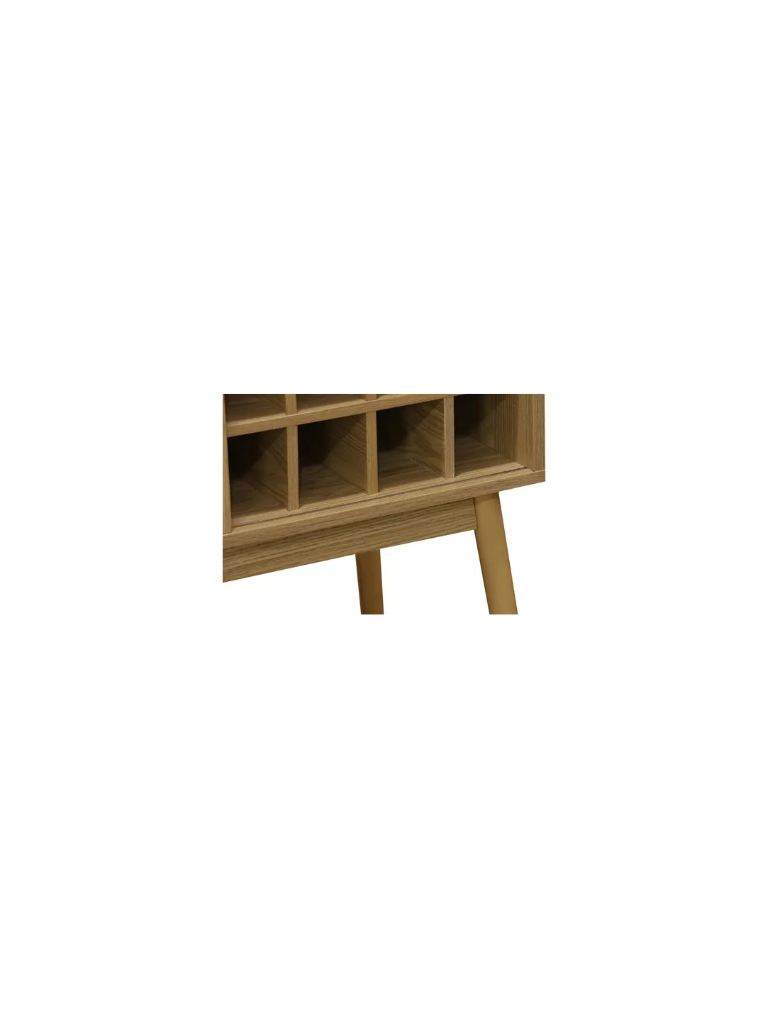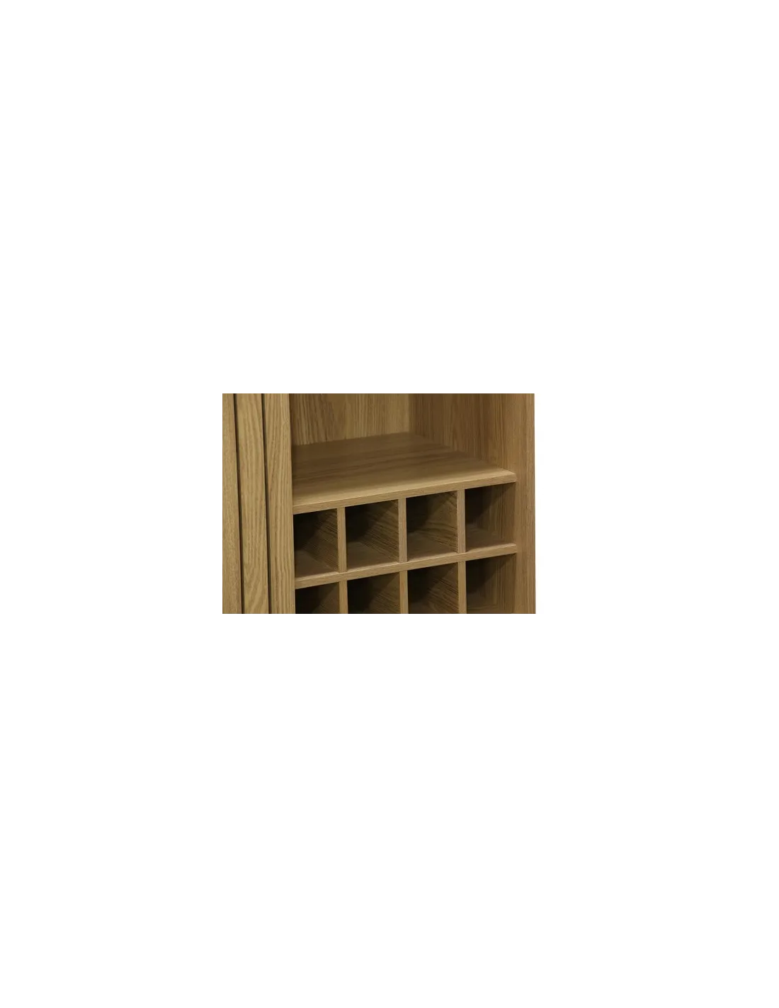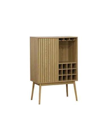 Consola botellero con gran capacidad de almacenaje 1 puerta corredera en alistonado decorativo Almacenaje para 12 botellas Colgadores para almacenaje de copas Papel laminado / chapa fresno Patas en madera Medidas: 80 x 40 x 120 cm - Unidad venta : caja 1 Ud - Volumen : 0 074 M 3 x Ud Entradas previstas : Colores disponibles : Fresno En stock : 36 Uds En stock : 36 Uds