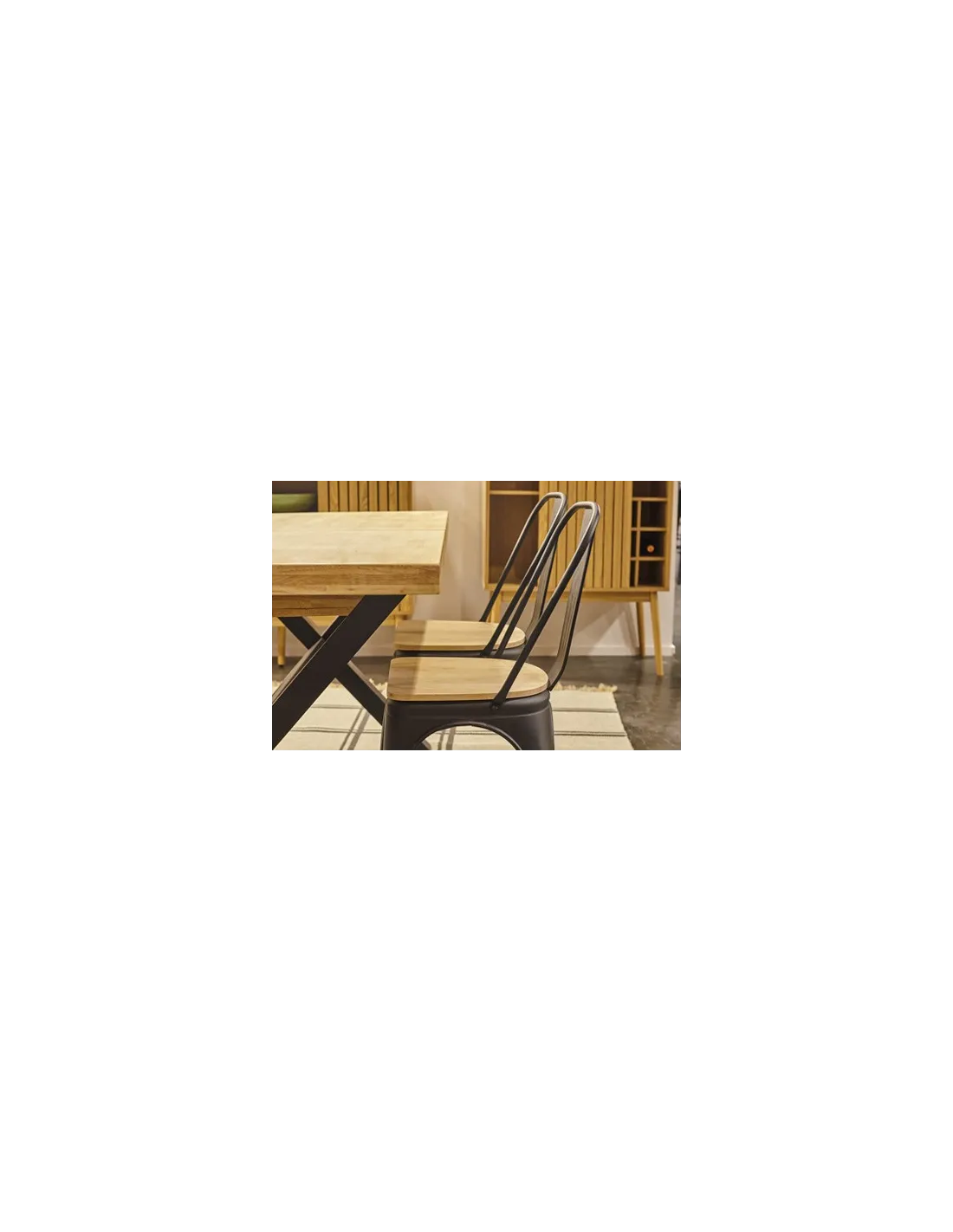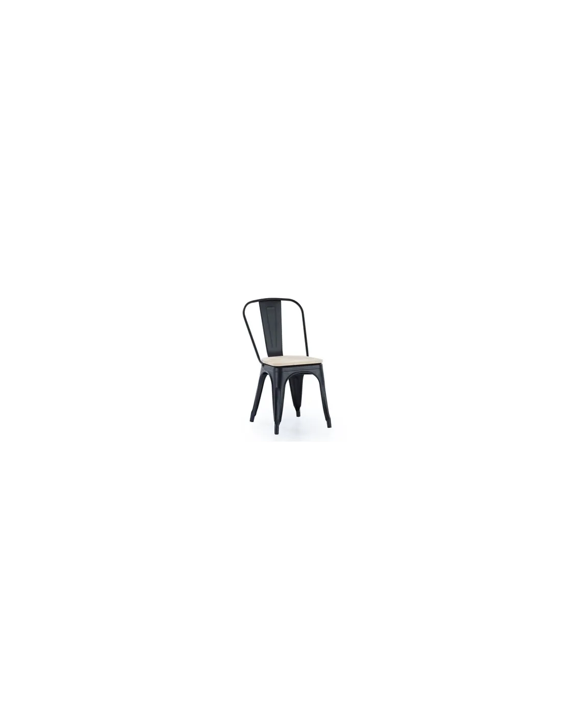 Silla comedor Tolix Diseño vintage industrial Chapa de acero Color negro mate Asiento en madera de roble Medidas: 45 x 45 x 85 cm - Unidad venta : caja 4 Uds - Volumen : 0 0775 M 3 x Ud Entradas previstas : Colores disponibles : Roble nordish / negro En stock : 251 Uds En stock : 251 Uds