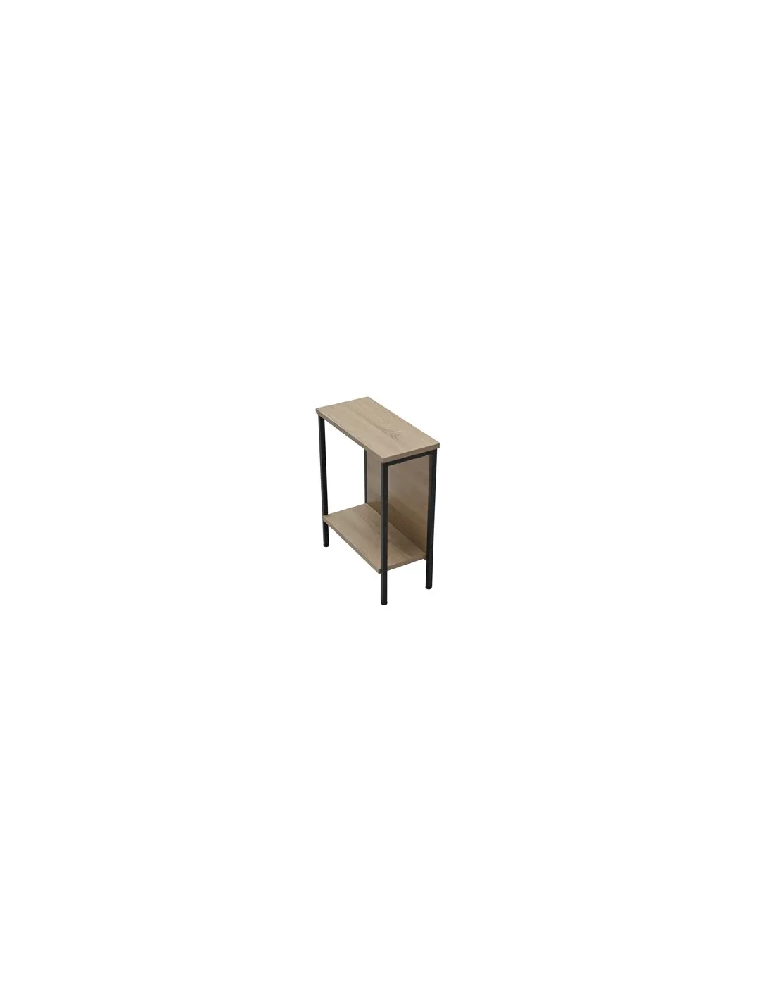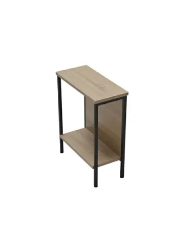 Mesa rincón / sofá con estante inferior Tapa y estante en melamina color roble Estructura metálica color negro Medidas : 40 x 18 x 48 cm - Unidad venta : caja 1 Ud - Volumen : 0 01 M 3 x Ud Entradas previstas : 187 Ud(s) - 08/03 Colores disponibles : Oak / Negro 187 Ud(s) - 08/03 187 Ud(s) - 08/03