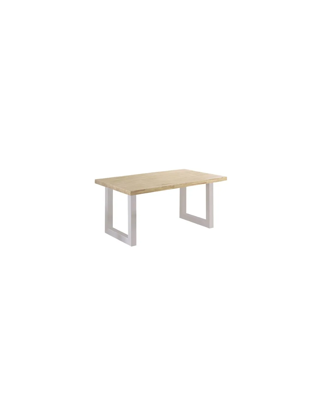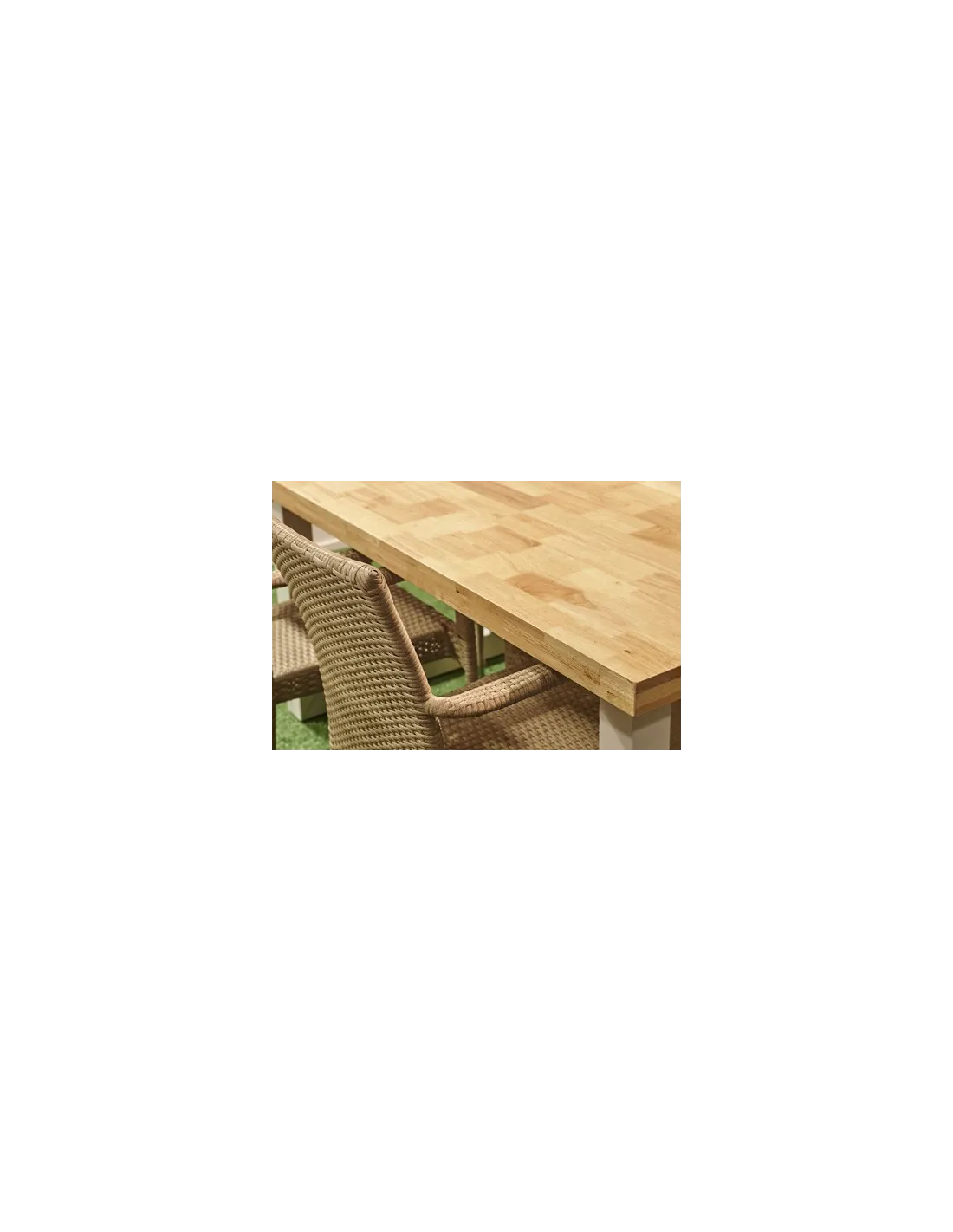 Mesa de terraza para uso interior / exterior Tapa en madera de roble con tratamiento antihumedad y protección UV Patas metálicas color blanco mate Topes de suelo niveladores Medidas: 160 x 90 x 76 cm - Unidad venta : caja 1 Ud - Volumen : 0 166 M 3 x Ud Entradas previstas : 3 Ud(s) - 15/03 Colores disponibles : Roble nordish / blanco 3 Ud(s) - 15/03 3 Ud(s) - 15/03