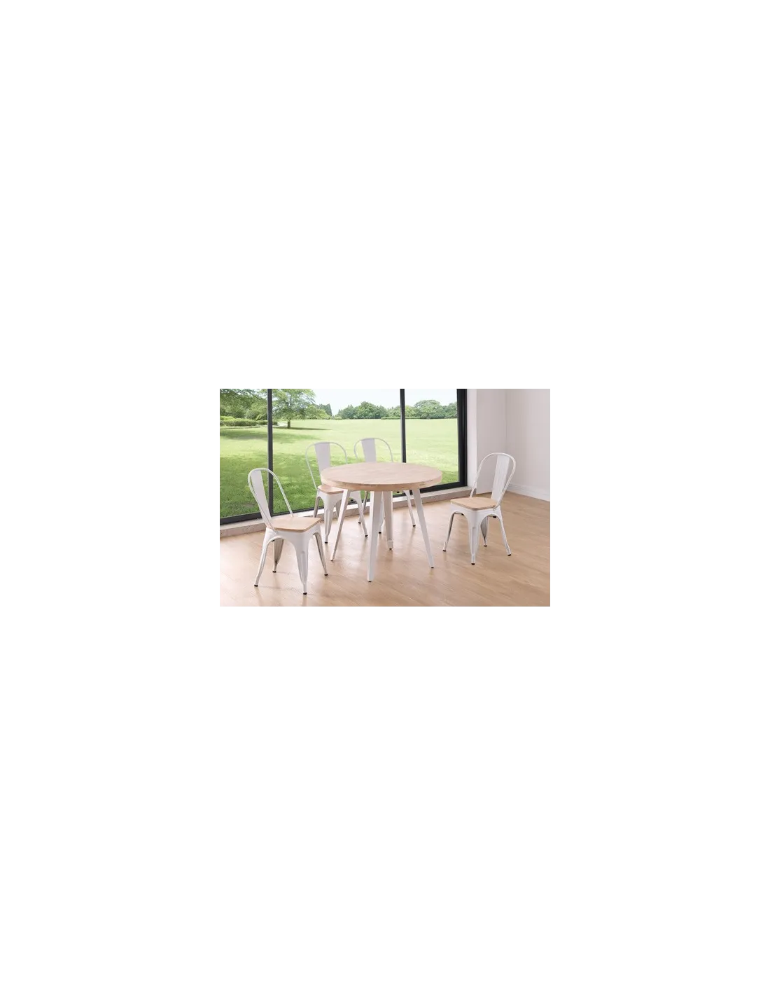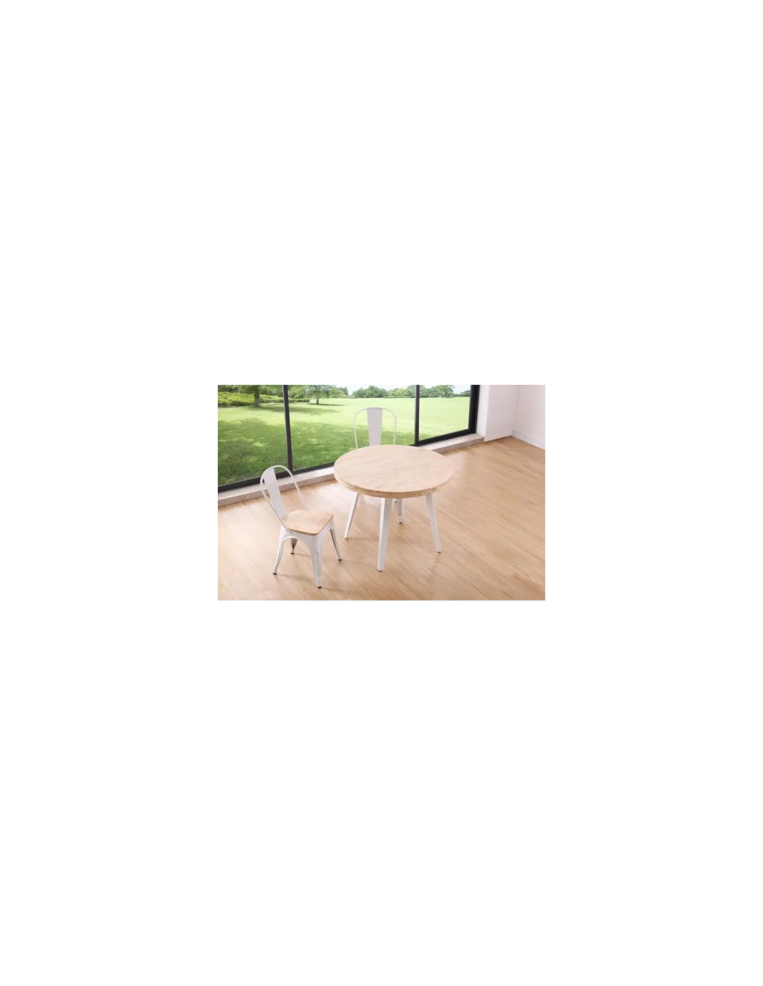 Tapa en madera de roble Grueso exterior tapa 54 mm Patas metálicas color blanco Medidas: 100 x 100 x 76 cm - Unidad venta : caja 1 Ud - Volumen : 0 106 M 3 x Ud Entradas previstas : Colores disponibles : Roble nordish / negro En stock : 11 Uds Roble nordish / blanco En stock : 2 Uds Roble honey / negro En stock : 43 Uds En stock : 11 Uds