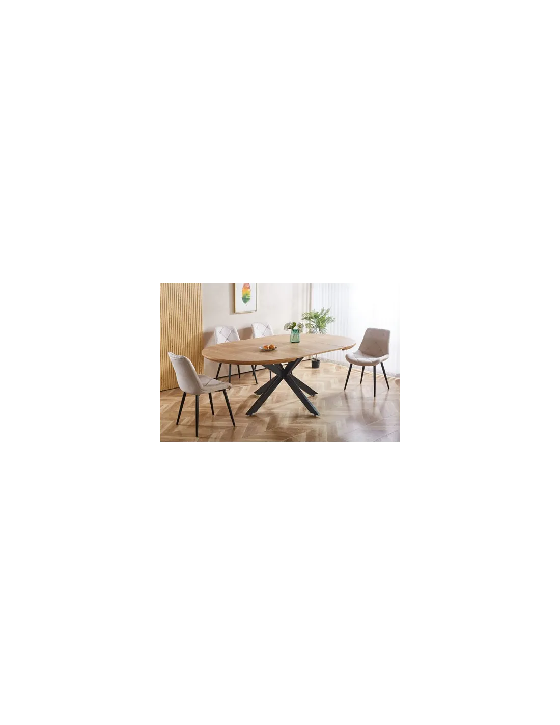Tapa y extensibles en MDF y papel laminado Extensible de 130 a 170 o 210 cm 2 extensibles independientes 40 cm de ancho Patas metálicas color negro mate Medidas: 130 - 170 - 210 x 130 x 76 cm - Unidad venta : caja 1 Ud - Volumen : 0 36 M 3 x Ud Entradas previstas : 27 Ud(s) - 29/03 30 Ud(s) - 30/04 Colores disponibles : Oak / Negro 27 Ud(s) - 29/03 27 Ud(s) - 29/03