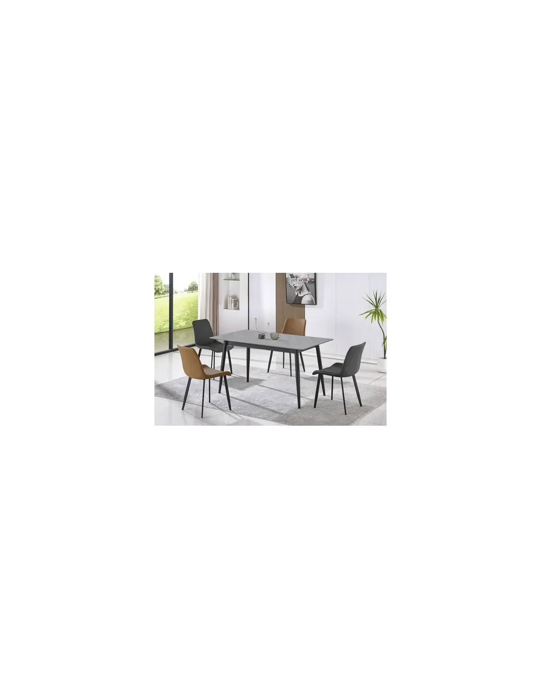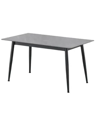 Mesa comedor fija Tapa ceramica gres gris en piedra sinterizada 12 mm de grosor con base de madera Patas metálicas cónicas en color negro Medidas: 140 x 80 x 75 cm - Unidad venta : caja 1 Ud - Volumen : 0 101 M 3 x Ud Entradas previstas : 15 Ud(s) - 15/03 Colores disponibles : Ceramic blanco / negro En stock : 26 Uds Gres gris / negro En stock : 38 Uds En stock : 26 Uds