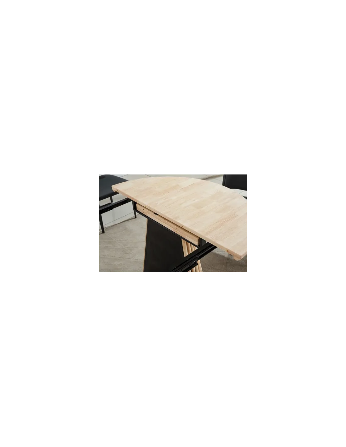 MDF con recubrimiento en madera maciza y chapa de roble Patas cónicas en palilleria de madera Extensible 2 tramos independientes 120 - 160 - 200 cm Amacenamiento de extensibles bajo la tapa Medidas: 120 - 160 - 200 x 120 x 76 cm - Unidad venta : caja 1 Ud - Volumen : 0 508 M 3 x Ud Entradas previstas : 30 Ud(s) - 15/03 70 Ud(s) - 10 / 12 semanas Colores disponibles : Roble nordish / negro En stock : 34 Uds En stock : 34 Uds