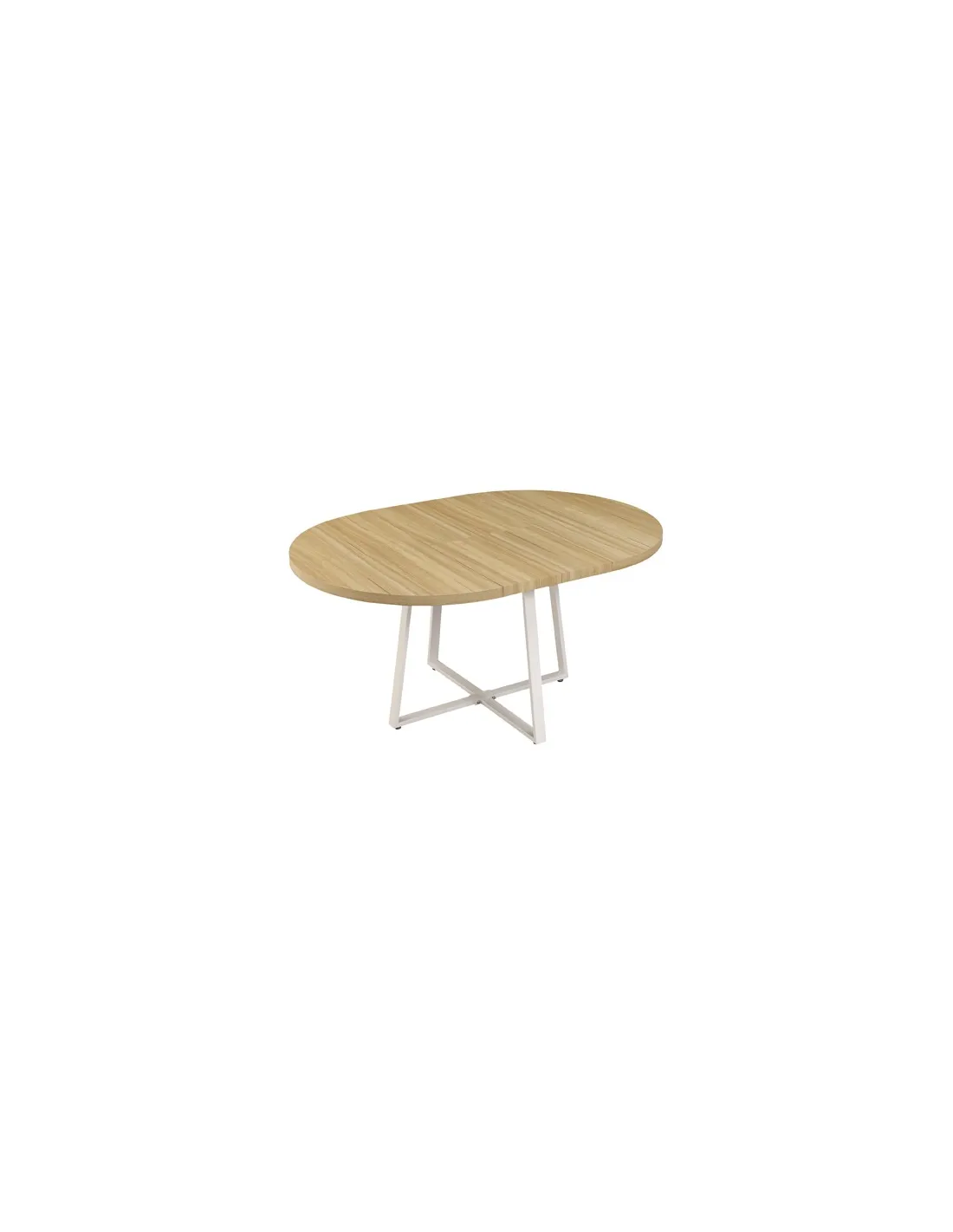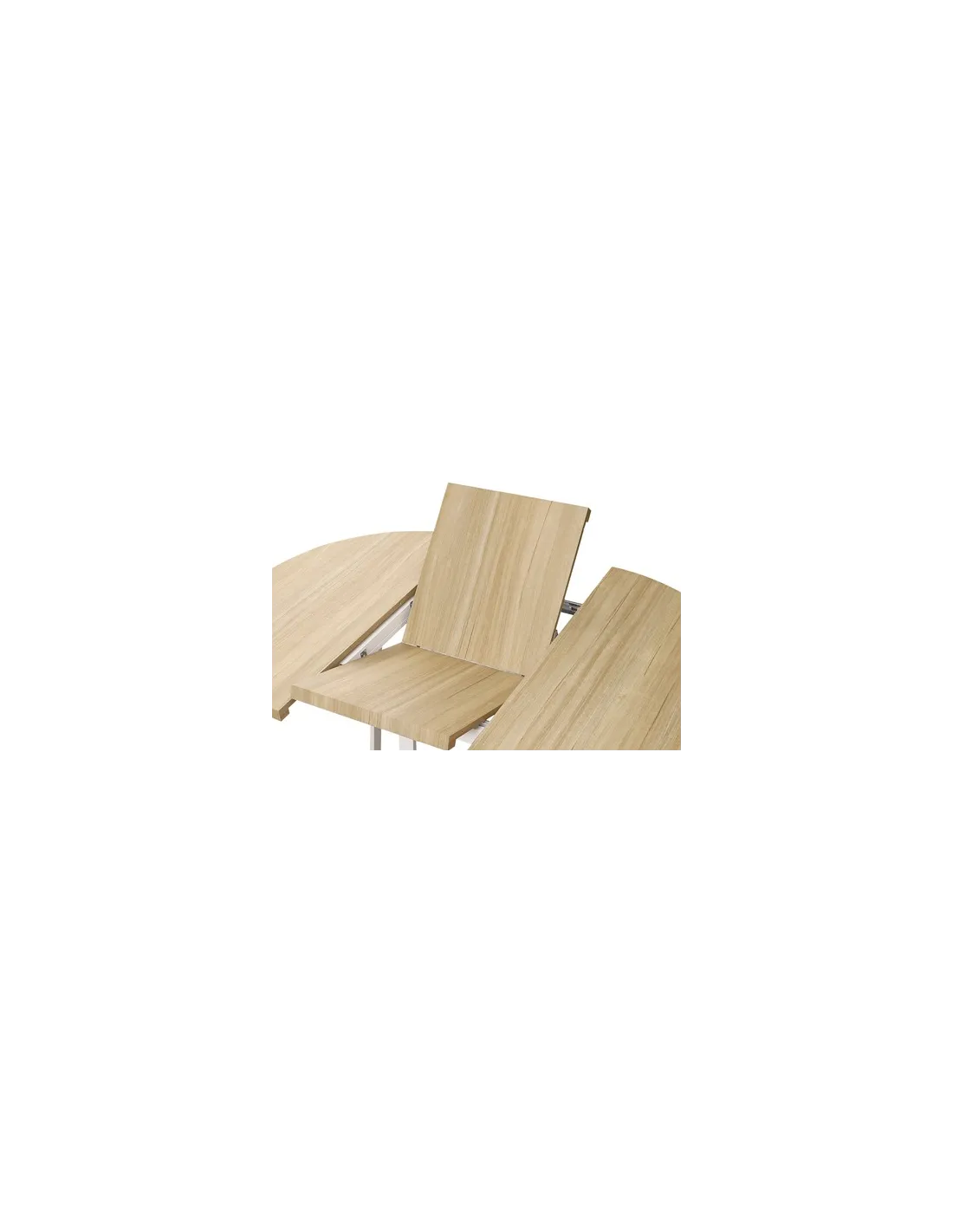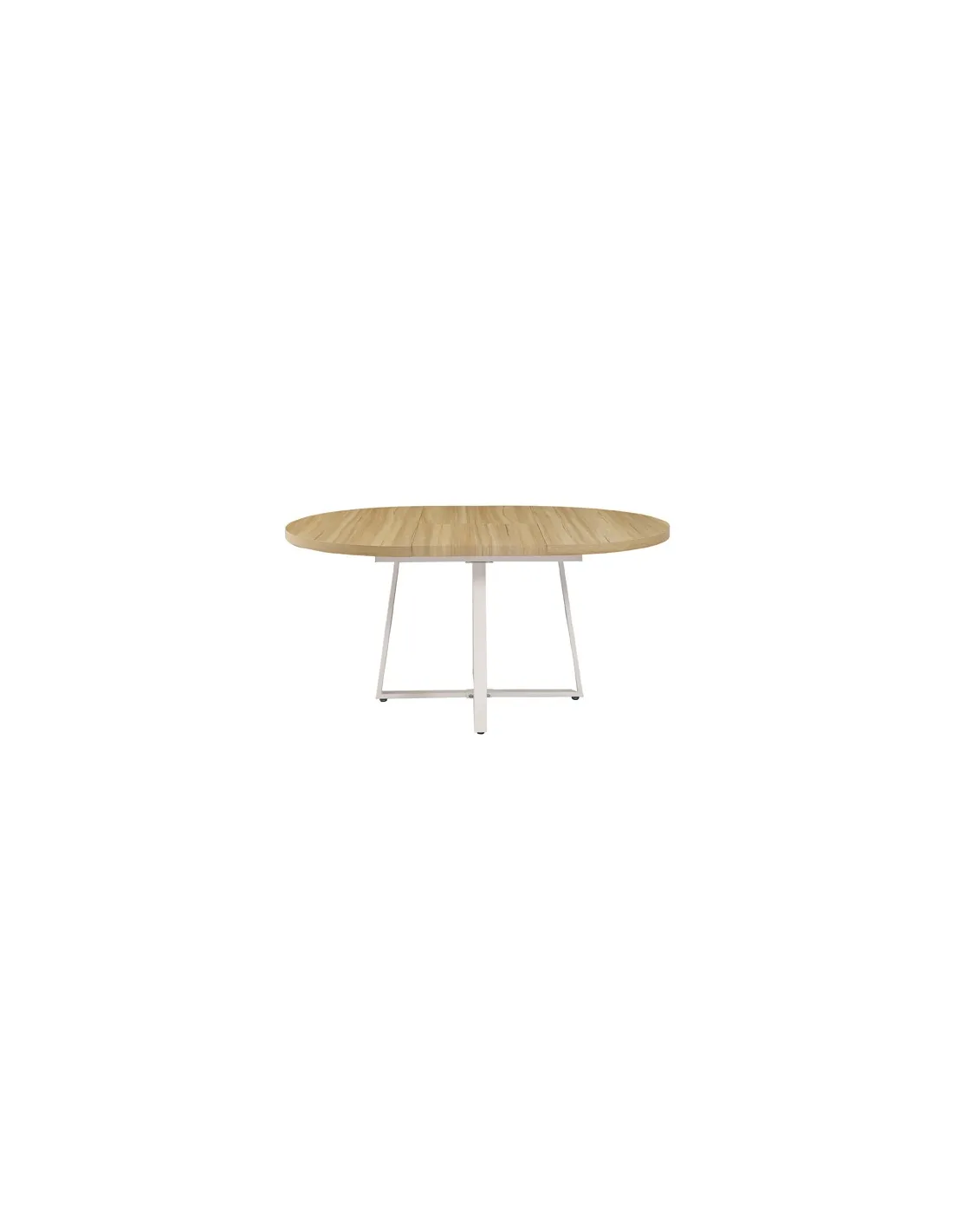 Mesa comedor redonda extensible Extensible hasta 160 cm Almacenamiento de extensible bajo la tapa Tapa en MDF 20 mm grosor y papel laminado 3D Grosor borde tapa 40 mm Patas metálicas color blanco Medidas: 110 - 160 x 110 x 76 cm - Unidad venta : caja 1 Ud - Volumen : 0 272 M 3 x Ud Entradas previstas : 7 Ud(s) - 14/04 Colores disponibles : Oak / Negro 4 Ud(s) - 14/04 Oak / Blanco 7 Ud(s) - 14/04 4 Ud(s) - 14/04