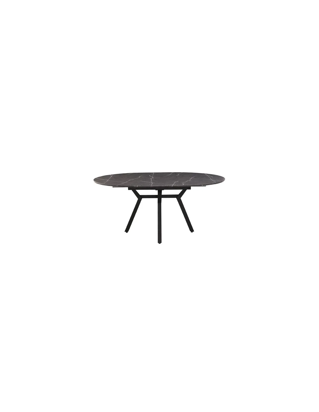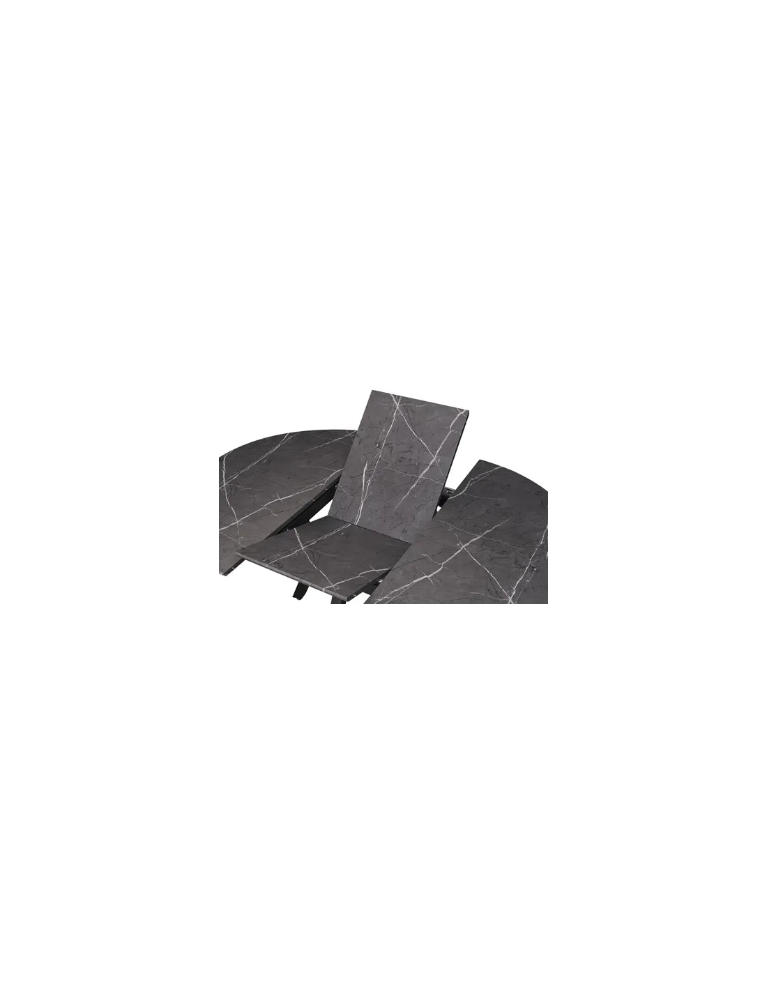 Mesa comedor redonda extensible Extensible hasta 180 cm Almacenamiento de extensible bajo la tapa Tapa en MDF 22 mm de grosor y papel laminado 3D Patas metálicas color negro Medidas: 130 - 180 x 130 x 76 cm - Unidad venta : caja 1 Ud - Volumen : 0 425 M 3 x Ud Entradas previstas : Colores disponibles : Ceramic grey / Blanco En stock : 14 Uds Ceramic Vulcano / Negro En stock : 1 Ud En stock : 14 Uds
