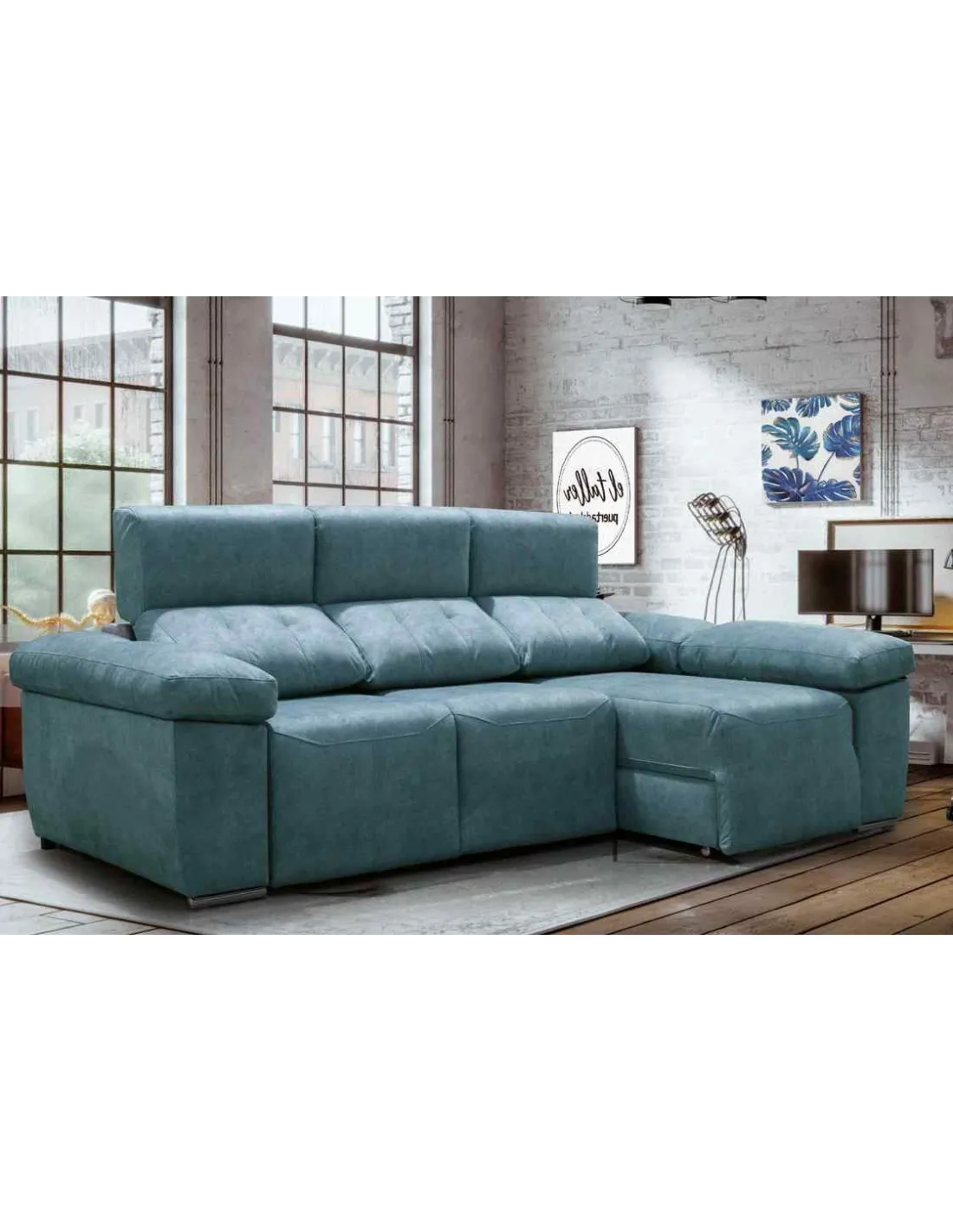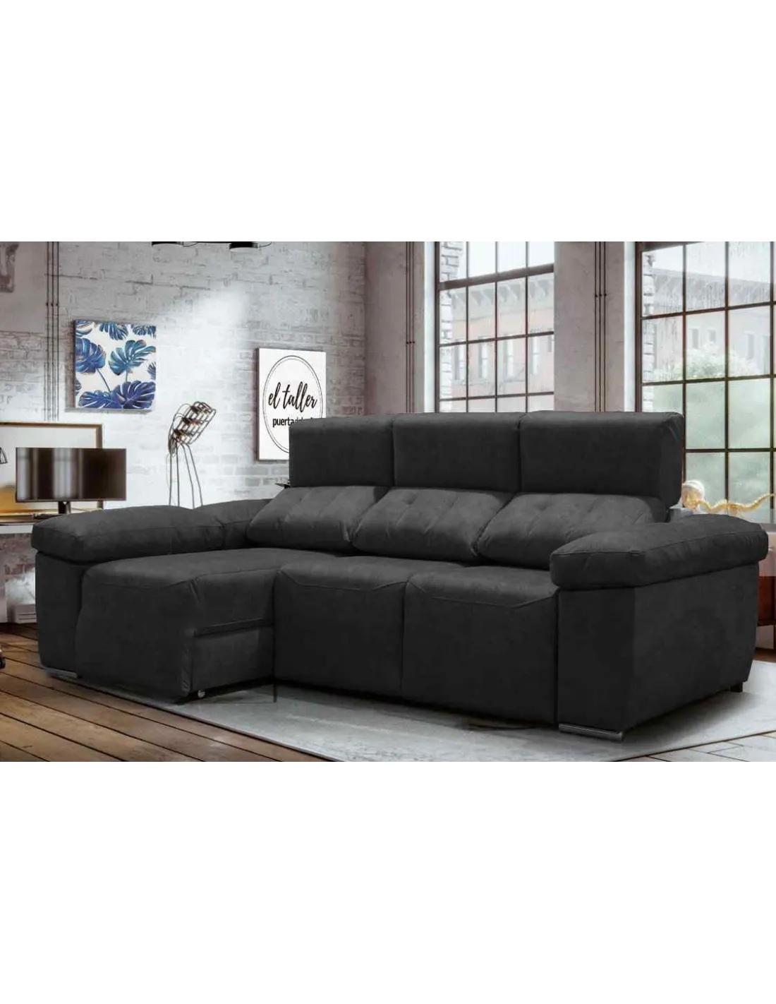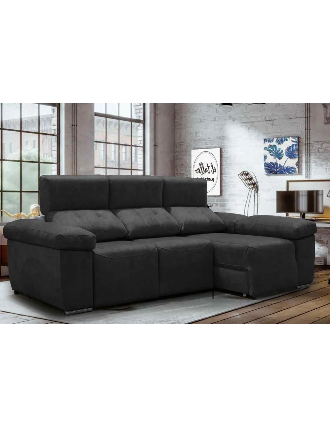 Los asientos supe deslizantes con sistema de carro extraíble proporciona al chaiselongue un espacio grande pudiendo tener un sofá cama teniendo una gran seguridad. Patas cromadas de altura baja para dar un estilo moderno.