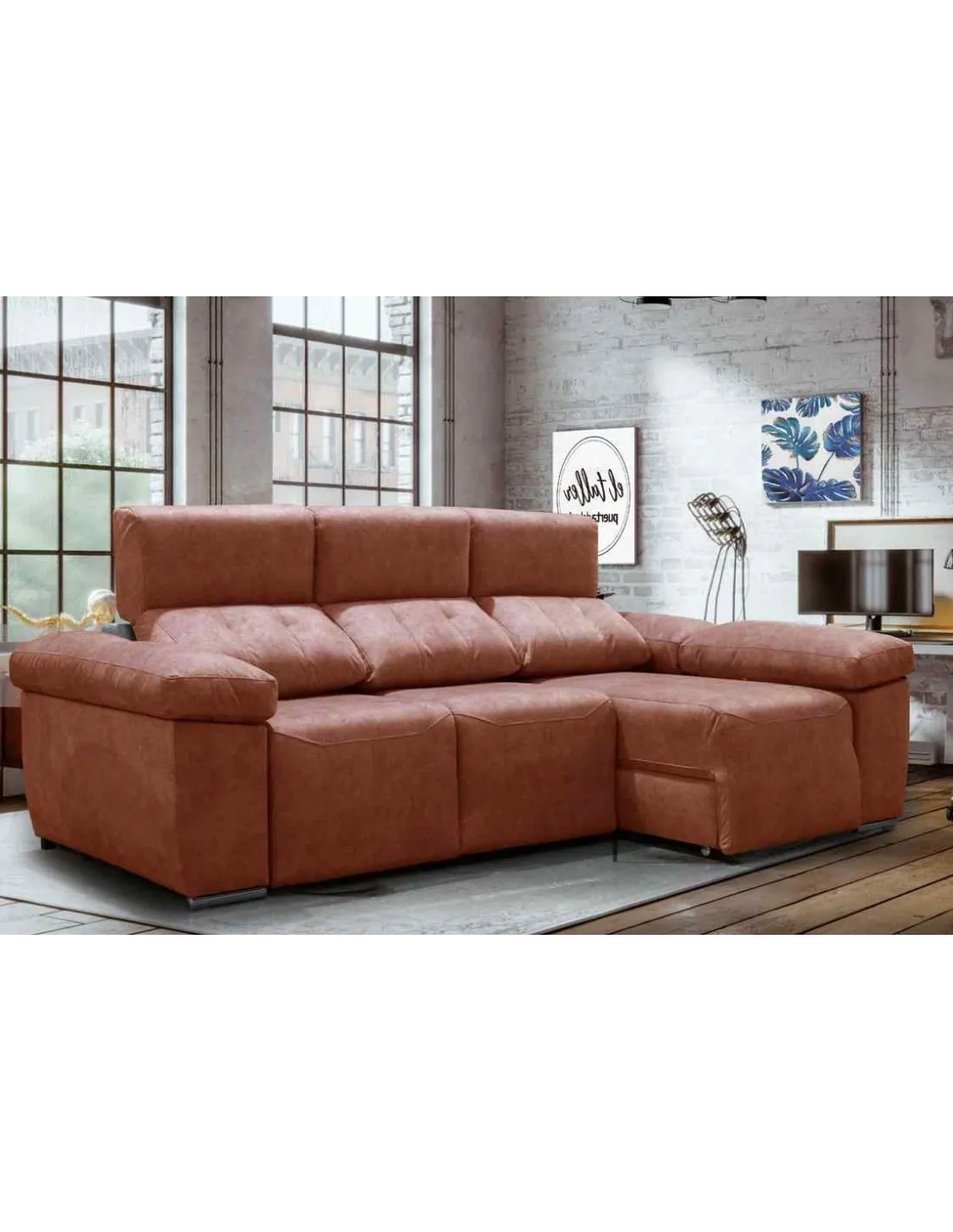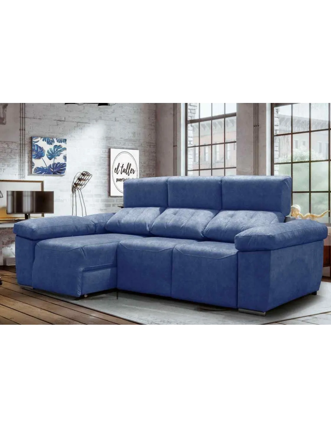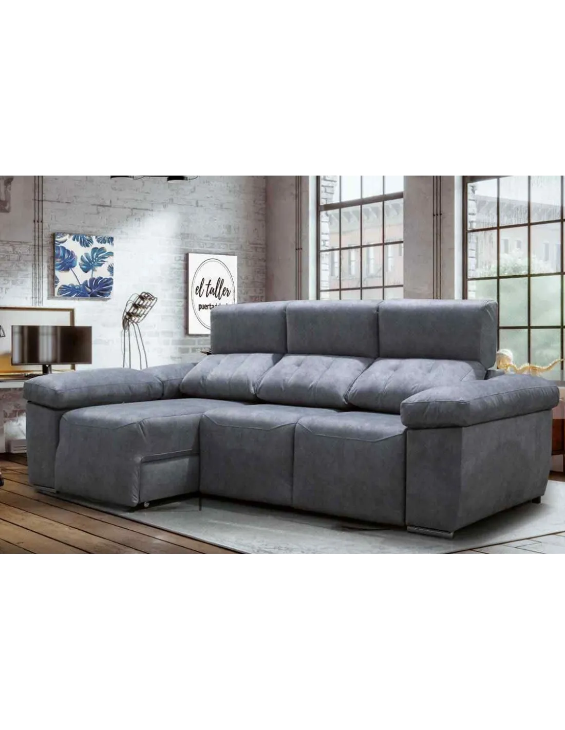 Los asientos supe deslizantes con sistema de carro extraíble proporciona al chaiselongue un espacio grande pudiendo tener un sofá cama teniendo una gran seguridad. Patas cromadas de altura baja para dar un estilo moderno.